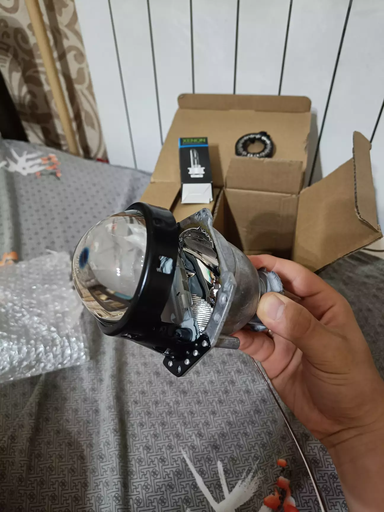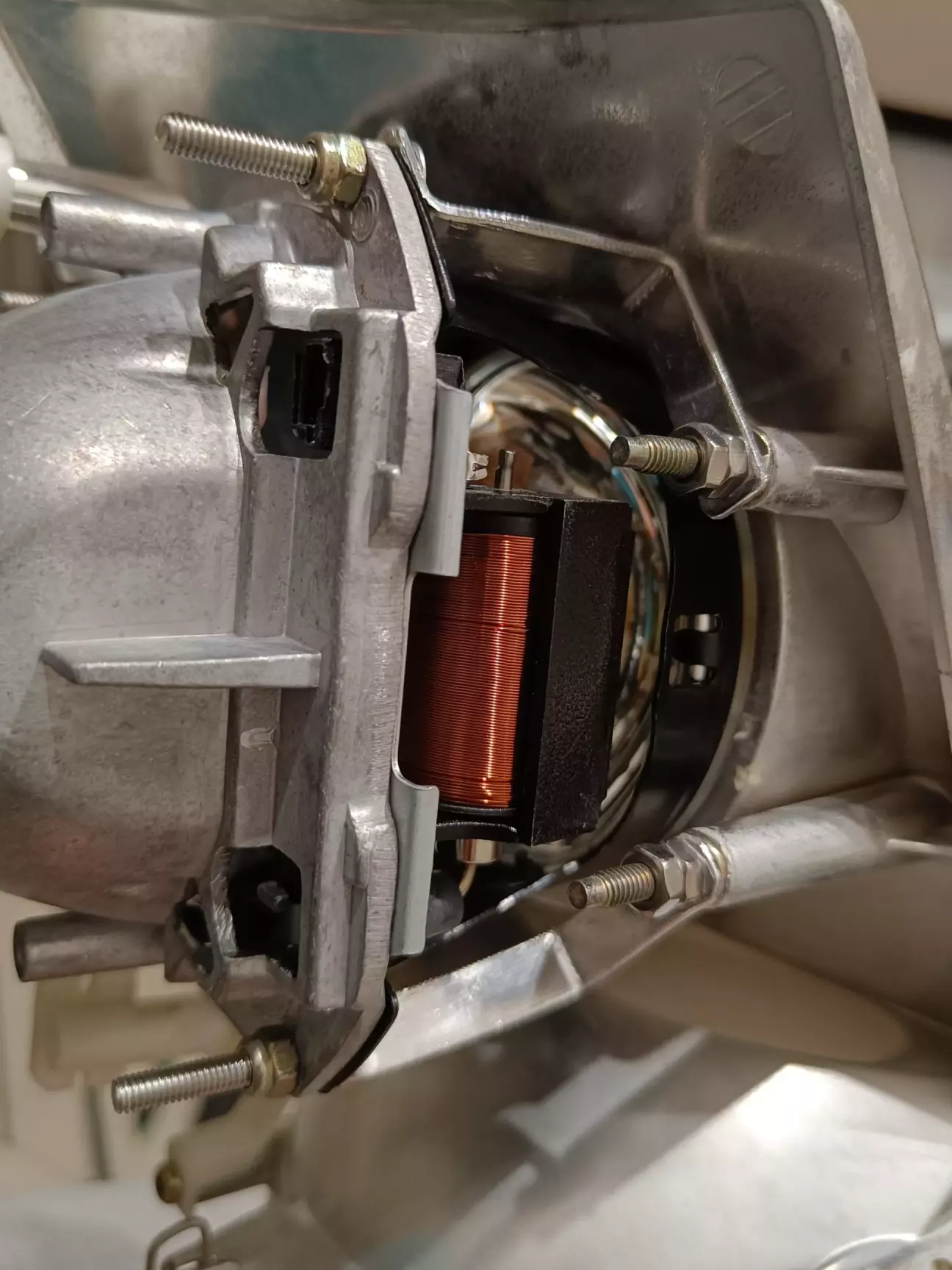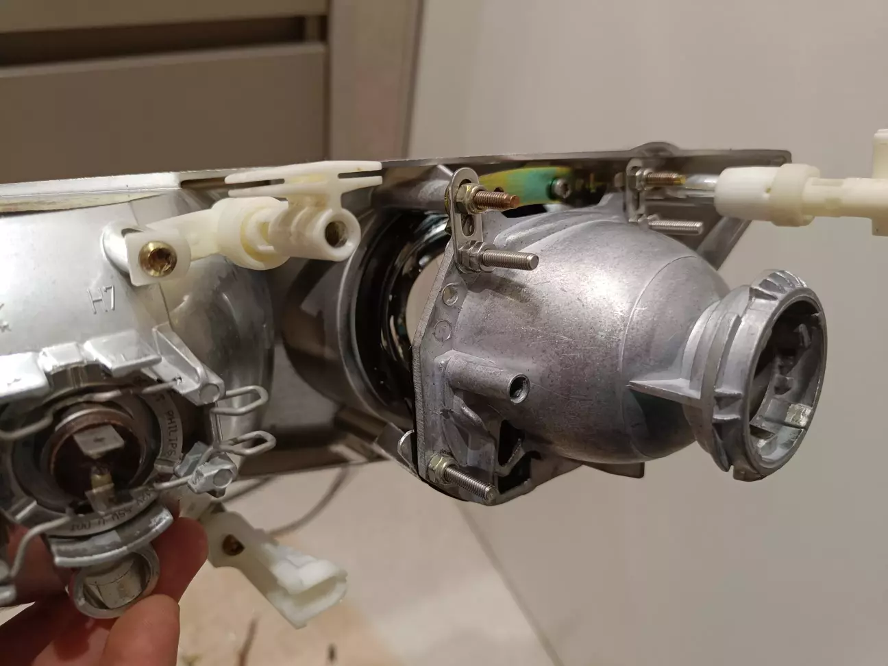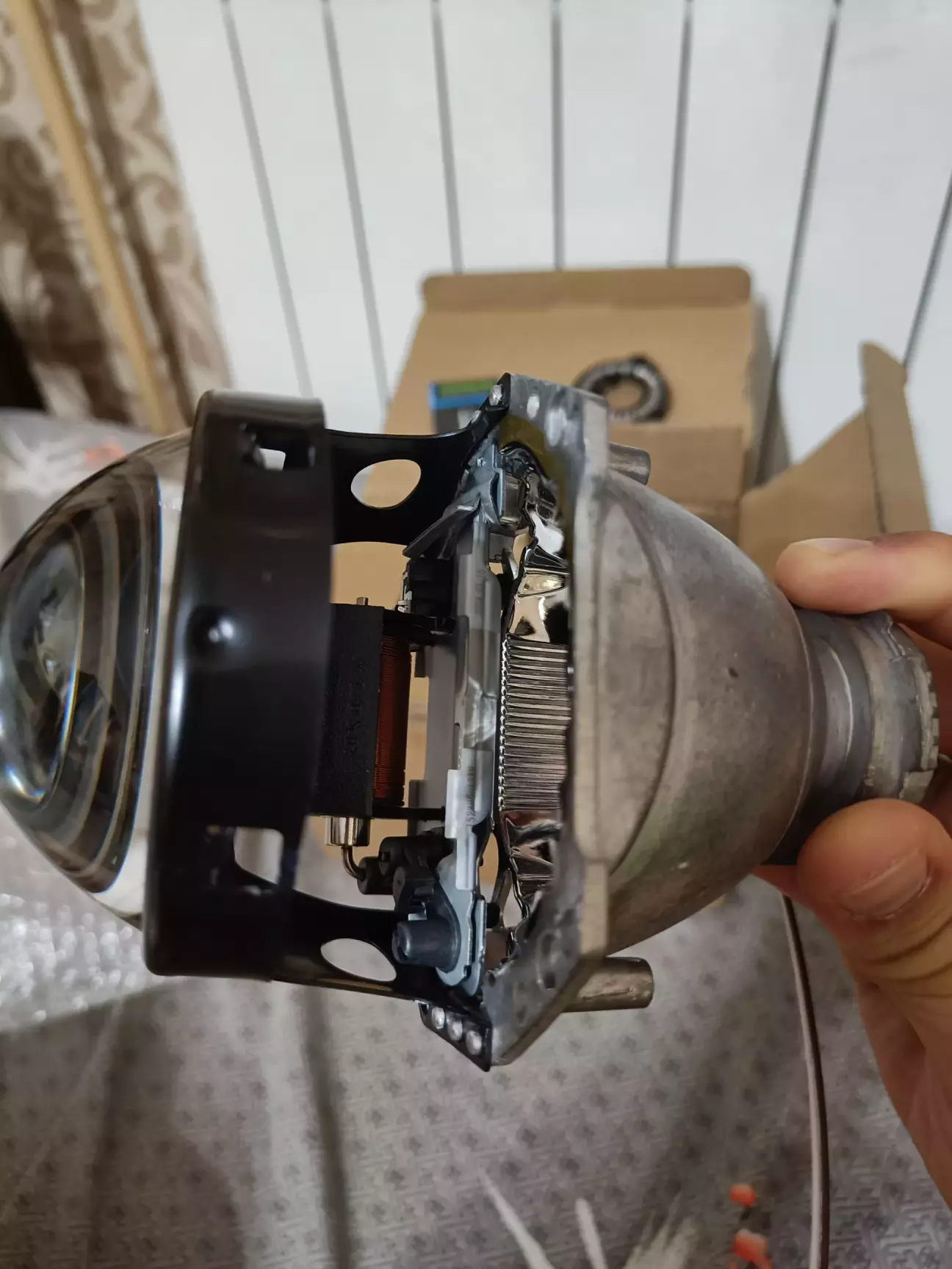 Оскільки нові лінзи мають рухому шторку для ввімкнення дальнього світла, дроти соленоїда шторки були допаяні до штатного дальнього світла.