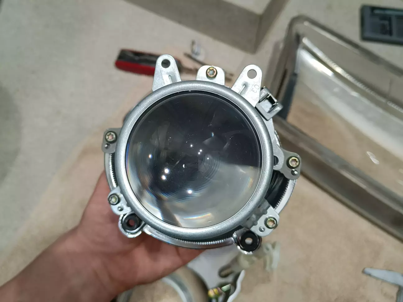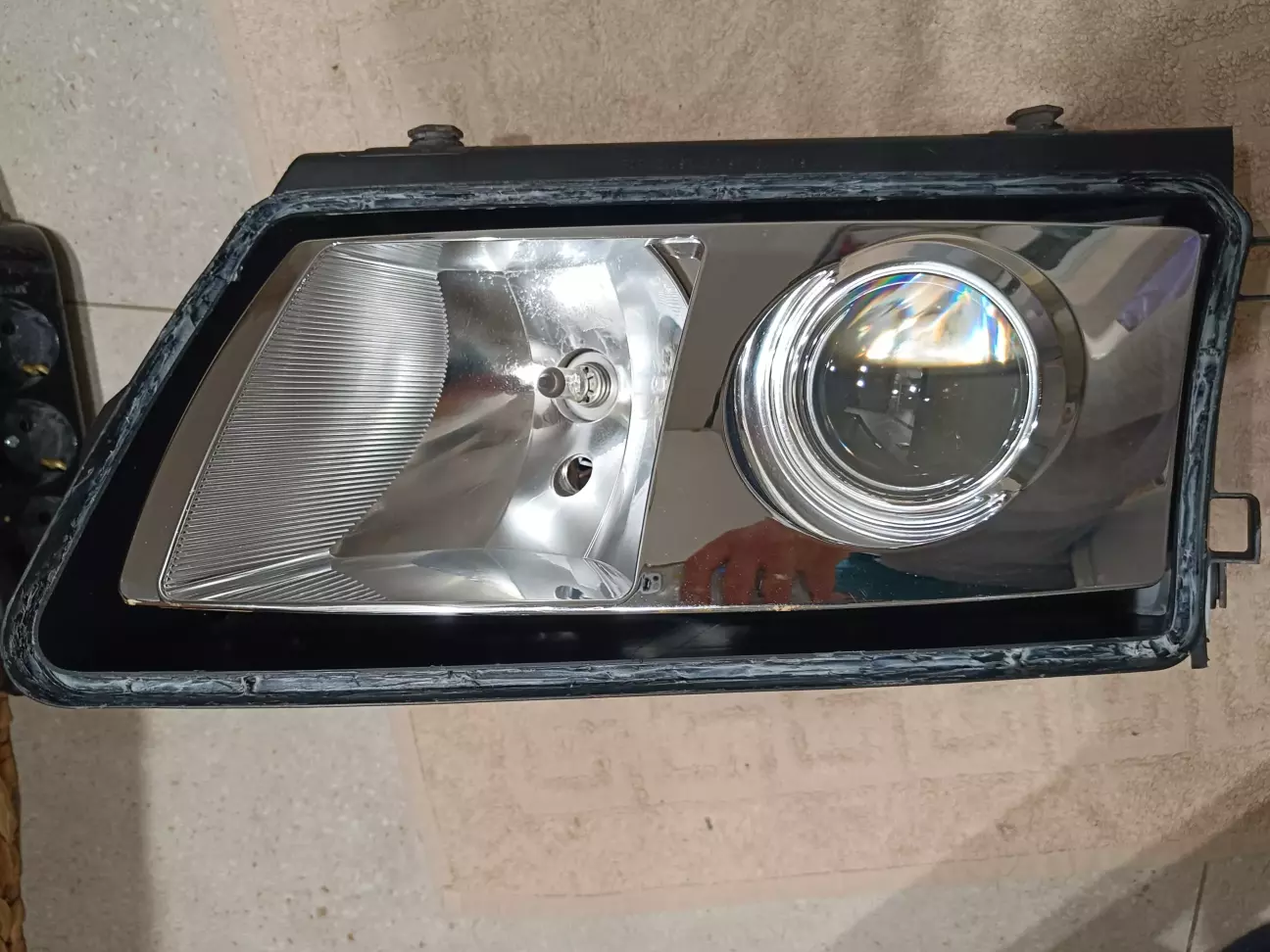 Фари стали значно важчі за рахунок ваги металевої чаші лінз (оригінальні чаші з пластику), але фінальне балансування фари з усім "навісним" мені дуже сподобалось. Встановити скло на новий герметик вдалося без проблем. Фари герметичні і не пітніють.