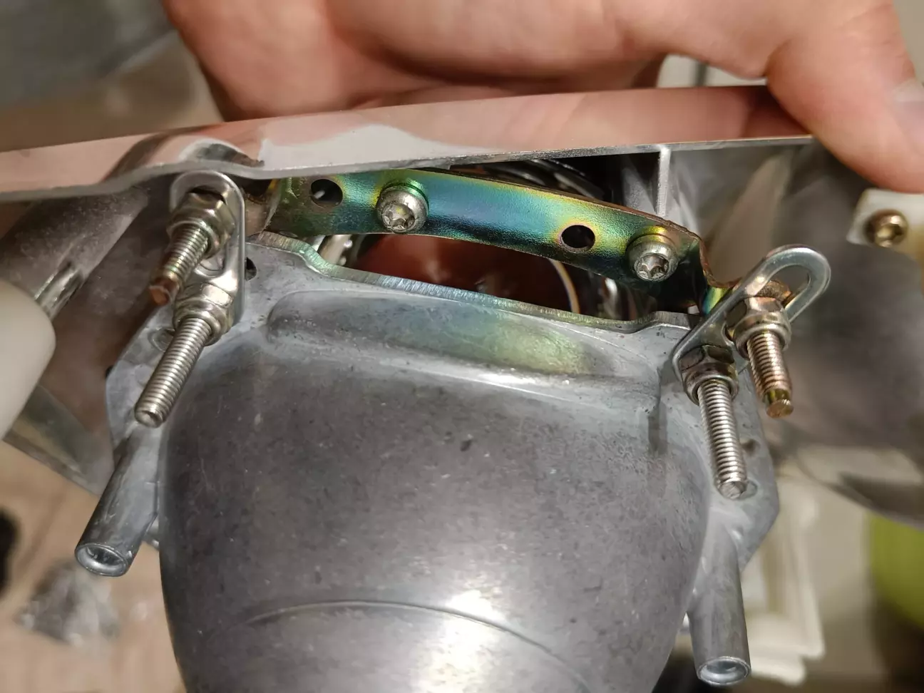 Нові лінзи встановлював "на глаз", але попри це вдалося встановити їх з правильним горизонтом) З листового алюмінію довелося виготовляти кронштейни для нижнього кріплення лінз.