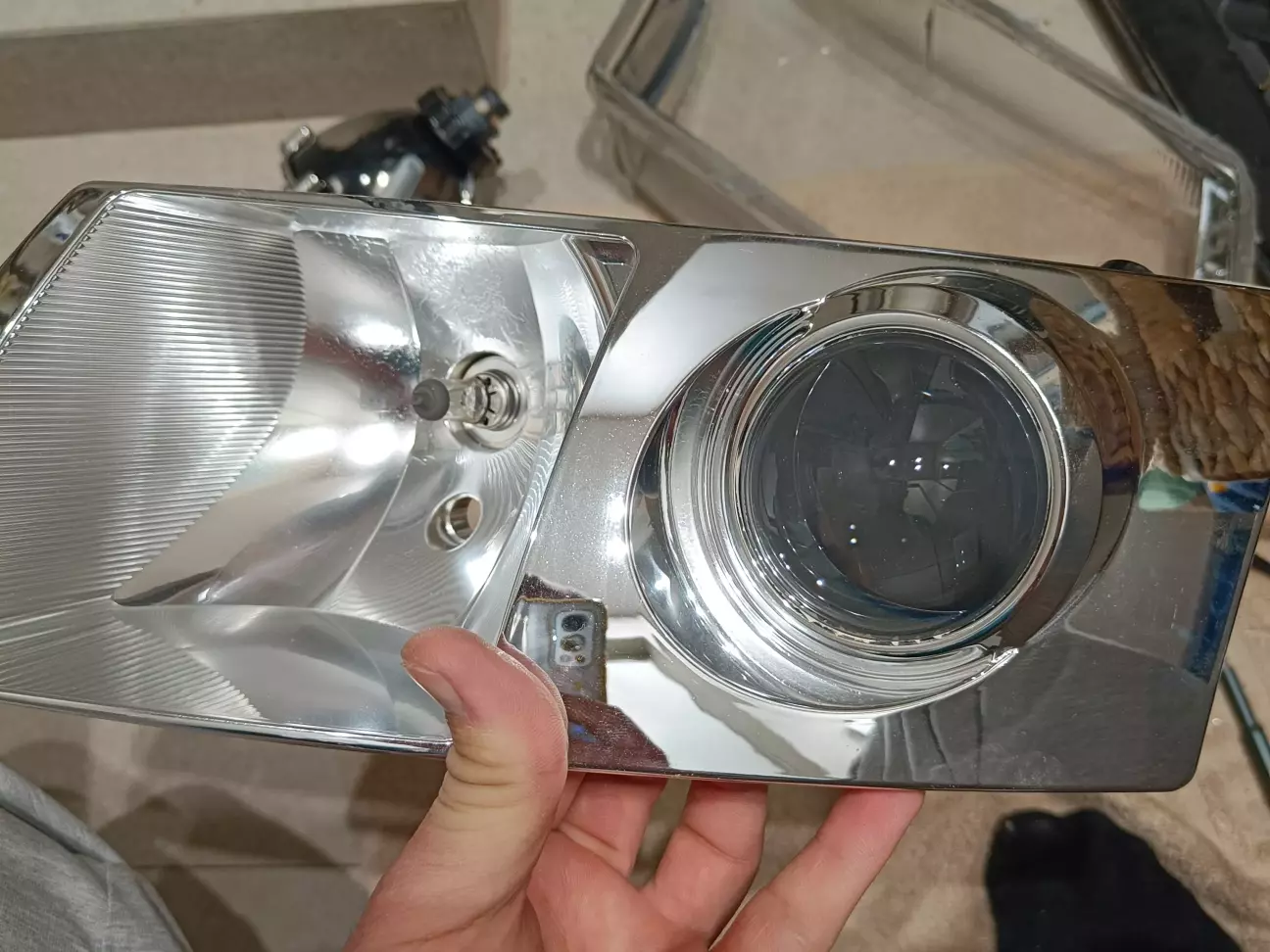 Розпакувати фари вдалося досить легко за допомогою будівельного фену. Герметик зчищав викруткою.
