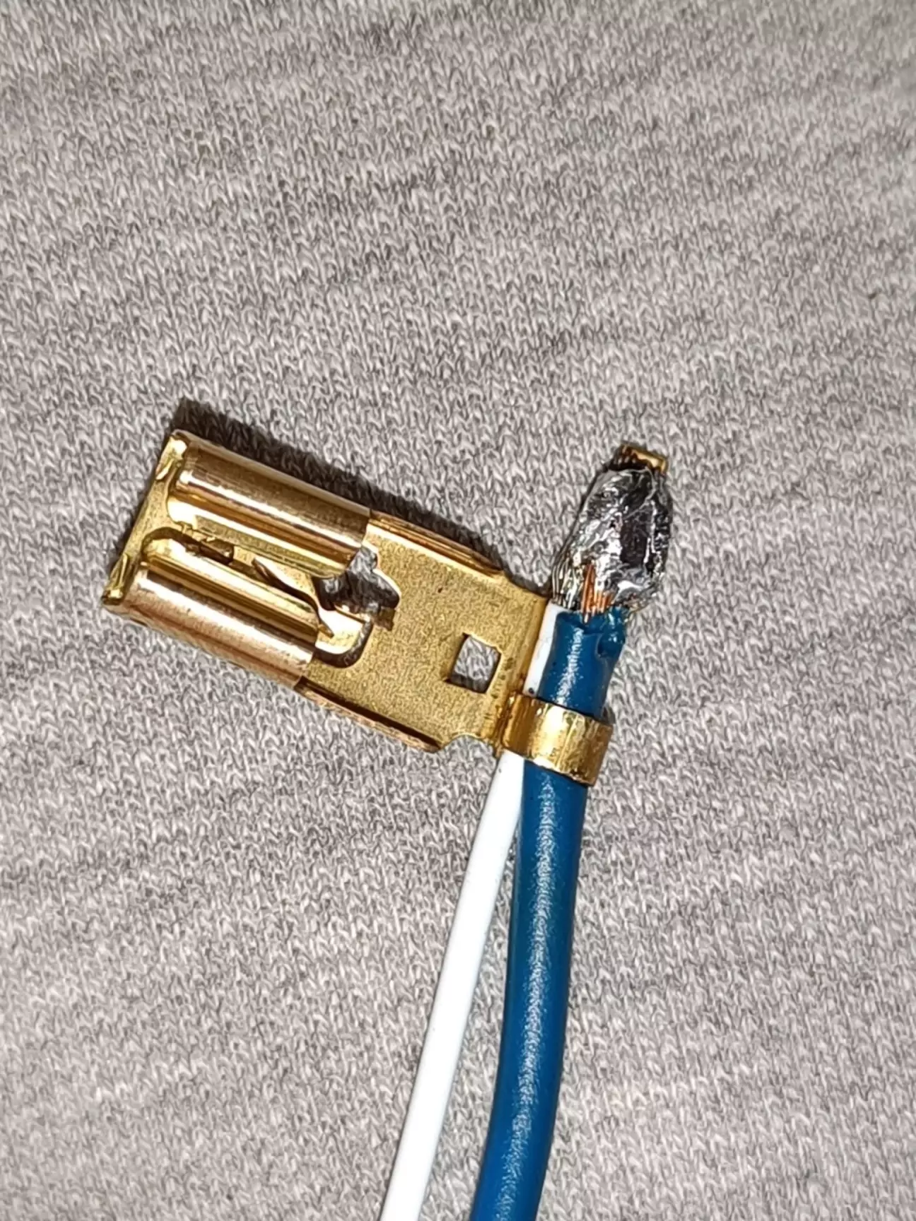 Безпосередньо клеми я не замінював, лише дроти були видалені під корінь, а нові - ретельно припаяні до клем і затиснені рідними вусиками клеми.