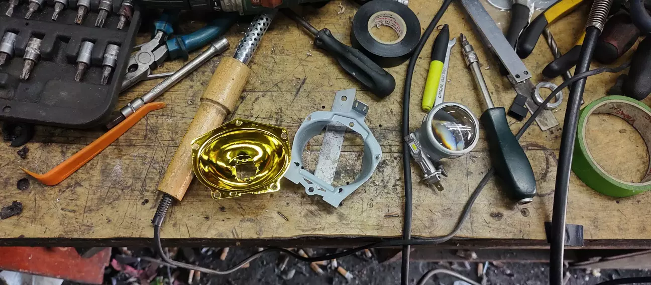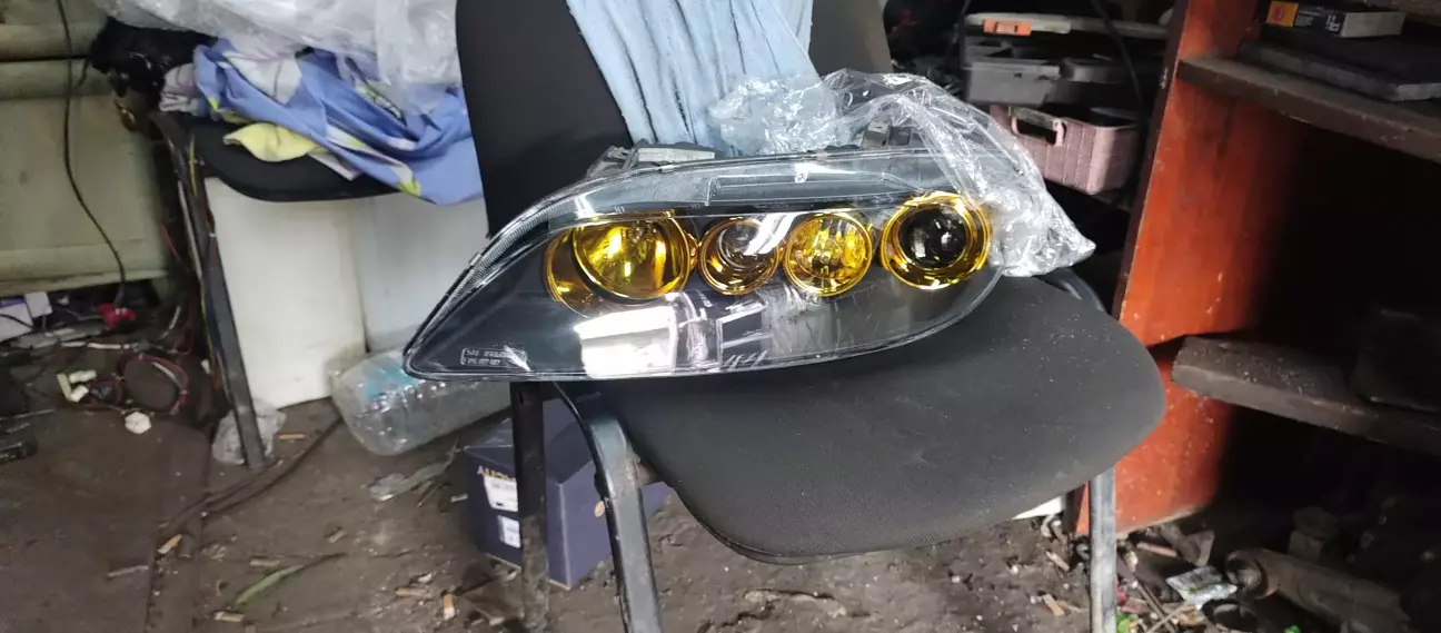 Нарешті руки дійшли зайнятися головним світлом,тому що були з ним питання.Нове скло фари було зумовлено у Китаї,і придбані бі лед лінзи 2.5 дюйми,як і стокові.