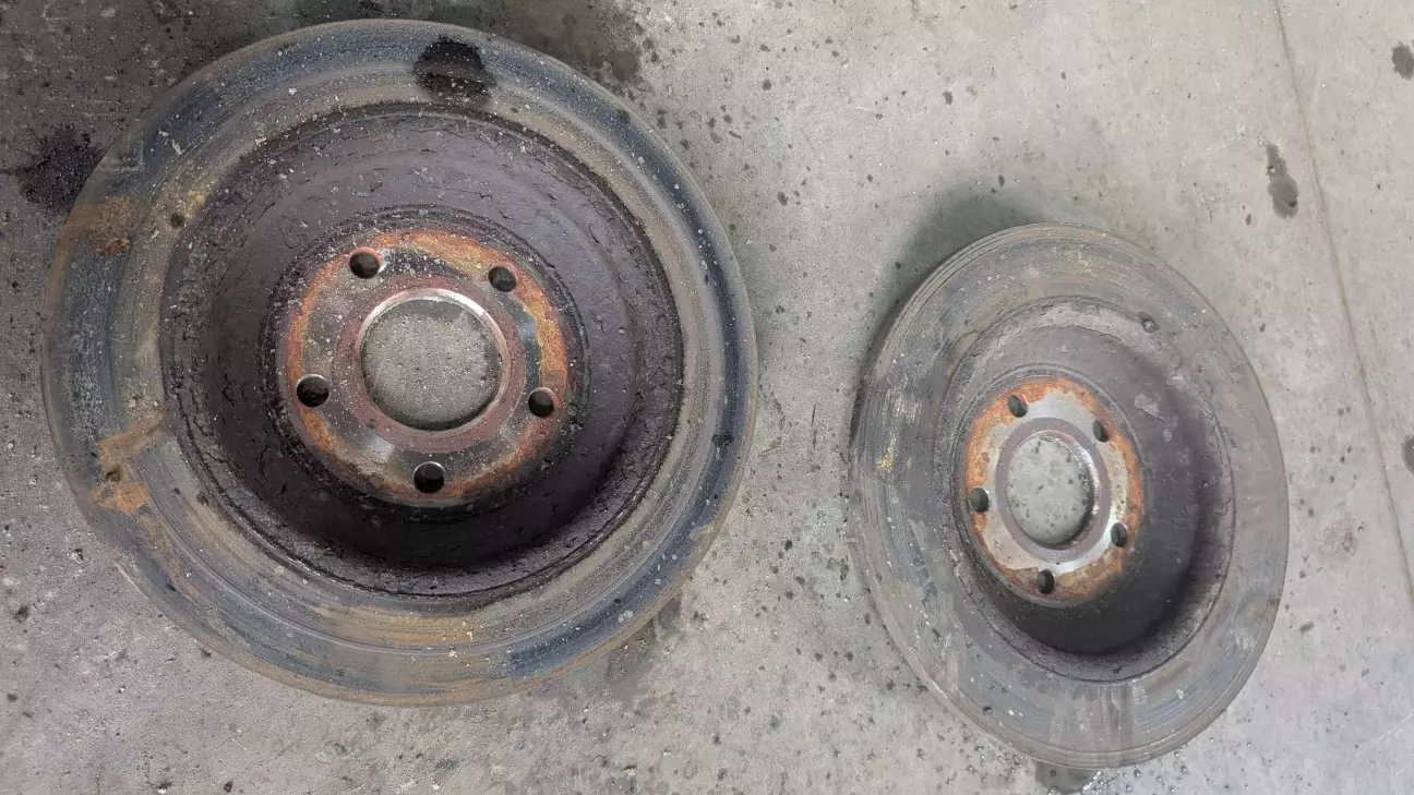 Чомусь на пробізі ~70к поверхня задніх оригінальних гальмівних дисків вирішила стати горбатою. Ще й поржавіли в зоні кріплень що прийшлося прогрівати щоб зняти.