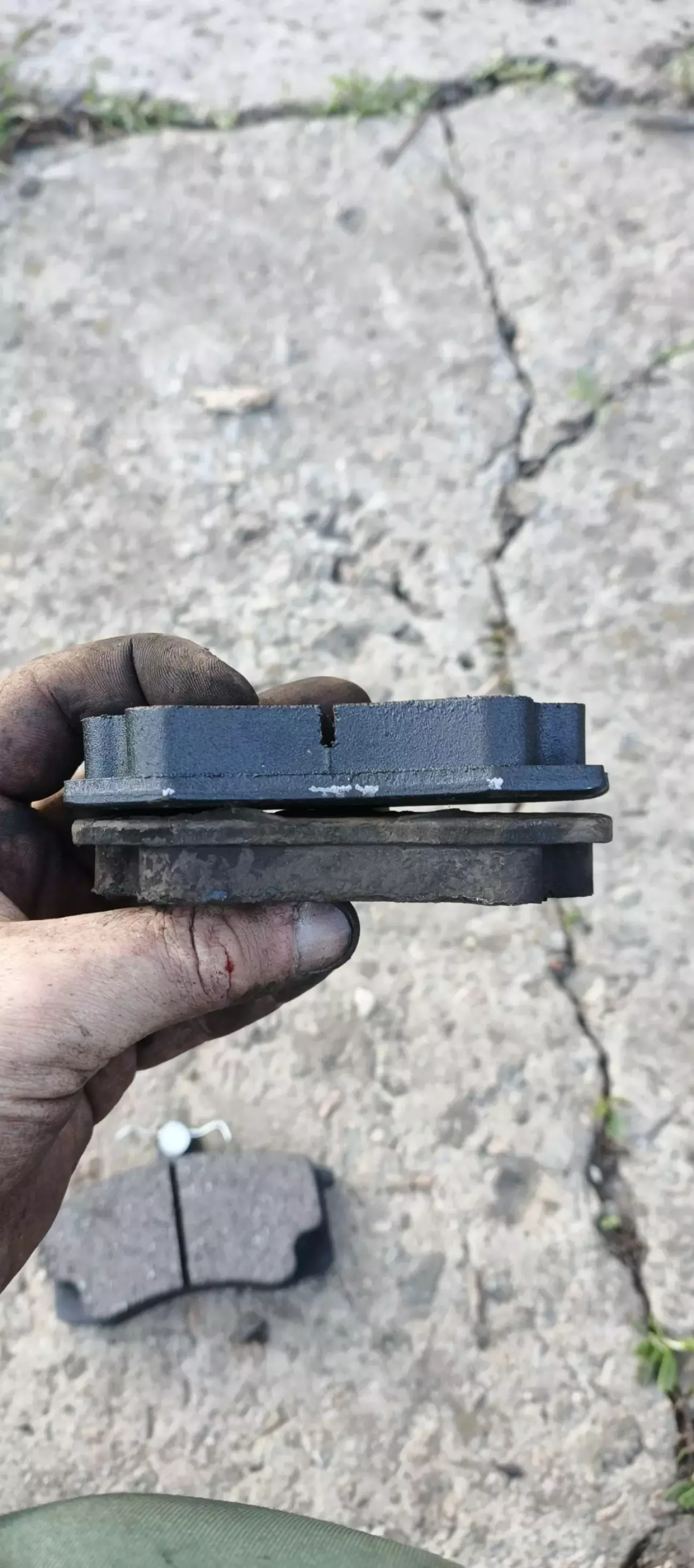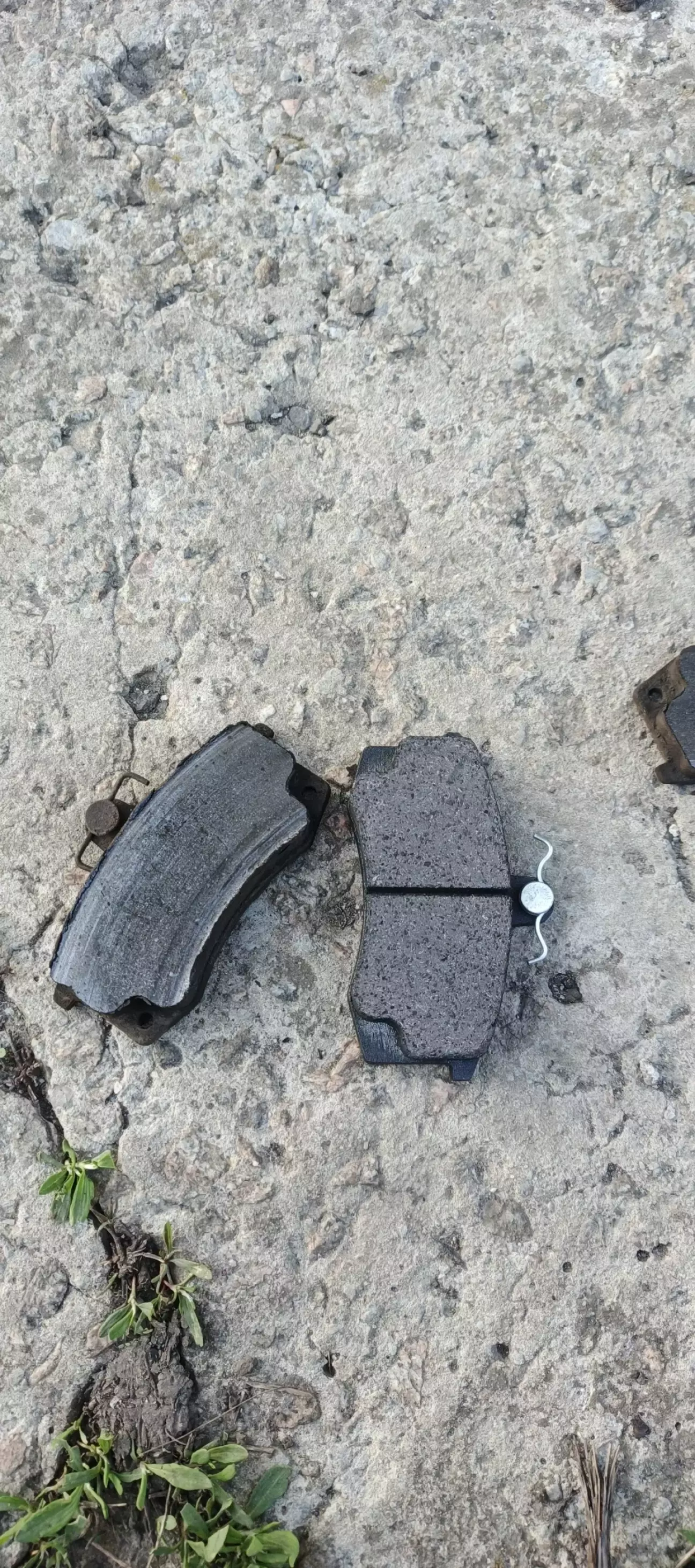 Різниця між новими і старим. Передні колодки міняв десь два роки тому. І вони наполовину вже стерлися.