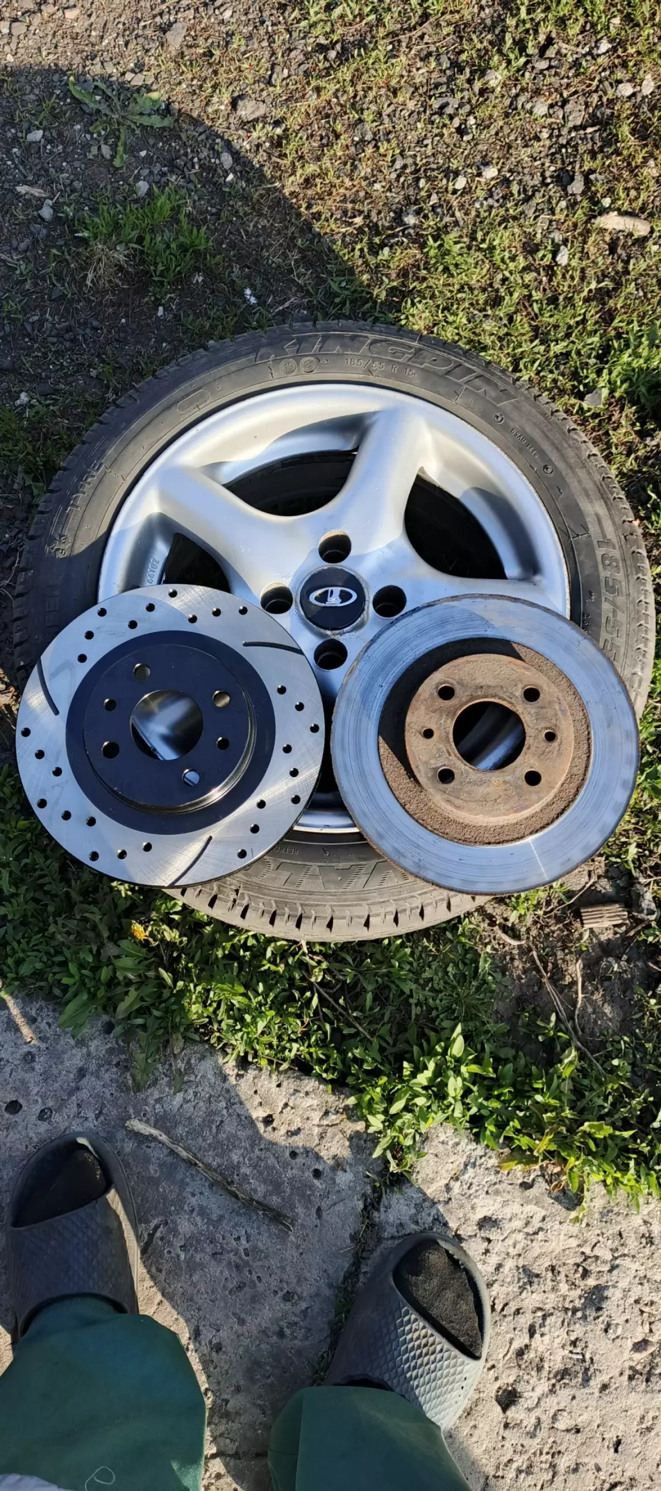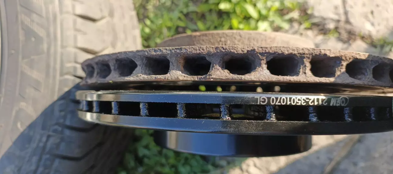 Ось дійшли руки і до гальм. Старі диски мабуть ще заводські. Вони прямо розсипались від легких ударів.