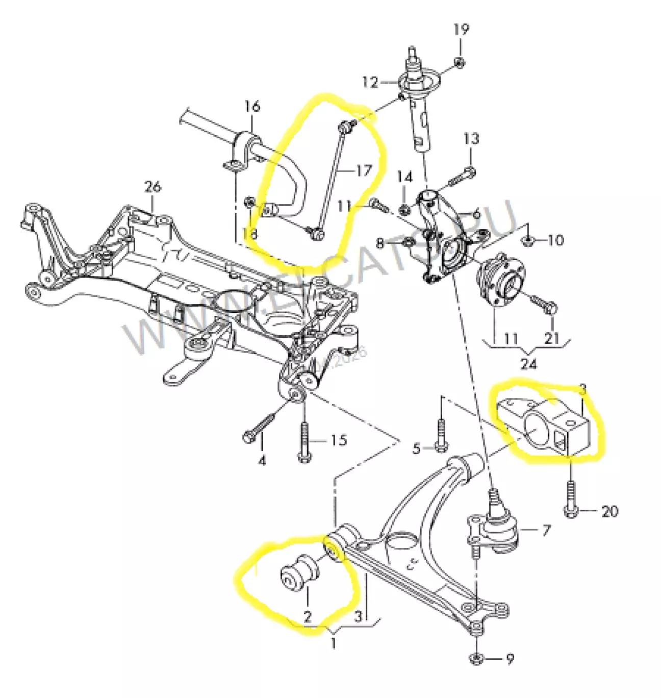 3) Задній сайлент-блок взборі - 3C0 199 231 D VAG -34559 LEMFORDER