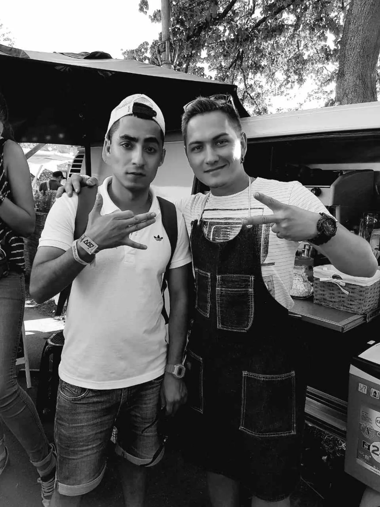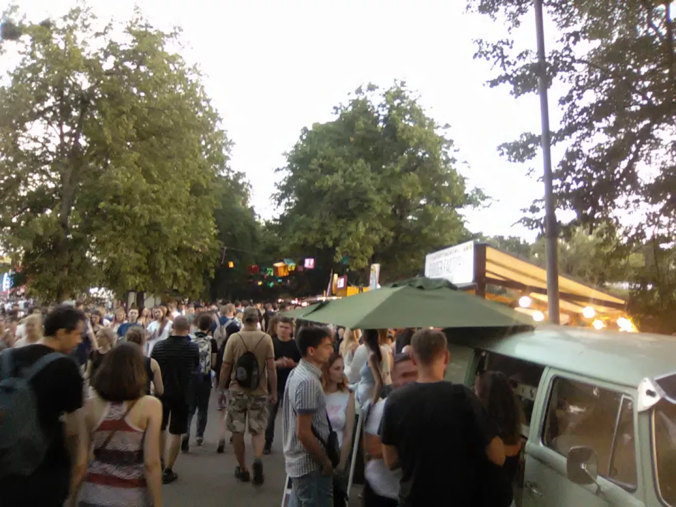 *Сарайко* с моей детворой поехали на ивент варить пиплам каву) Там сфоткались с Курганом))) Prodigy, Kasabian и Röyksopp еще не подходили… Очень масштабное событие, восемь сцен и более 200 исполнителей, жара, холодный кофе идет на ура, рок на славу, всем Peace и пара тройка фото