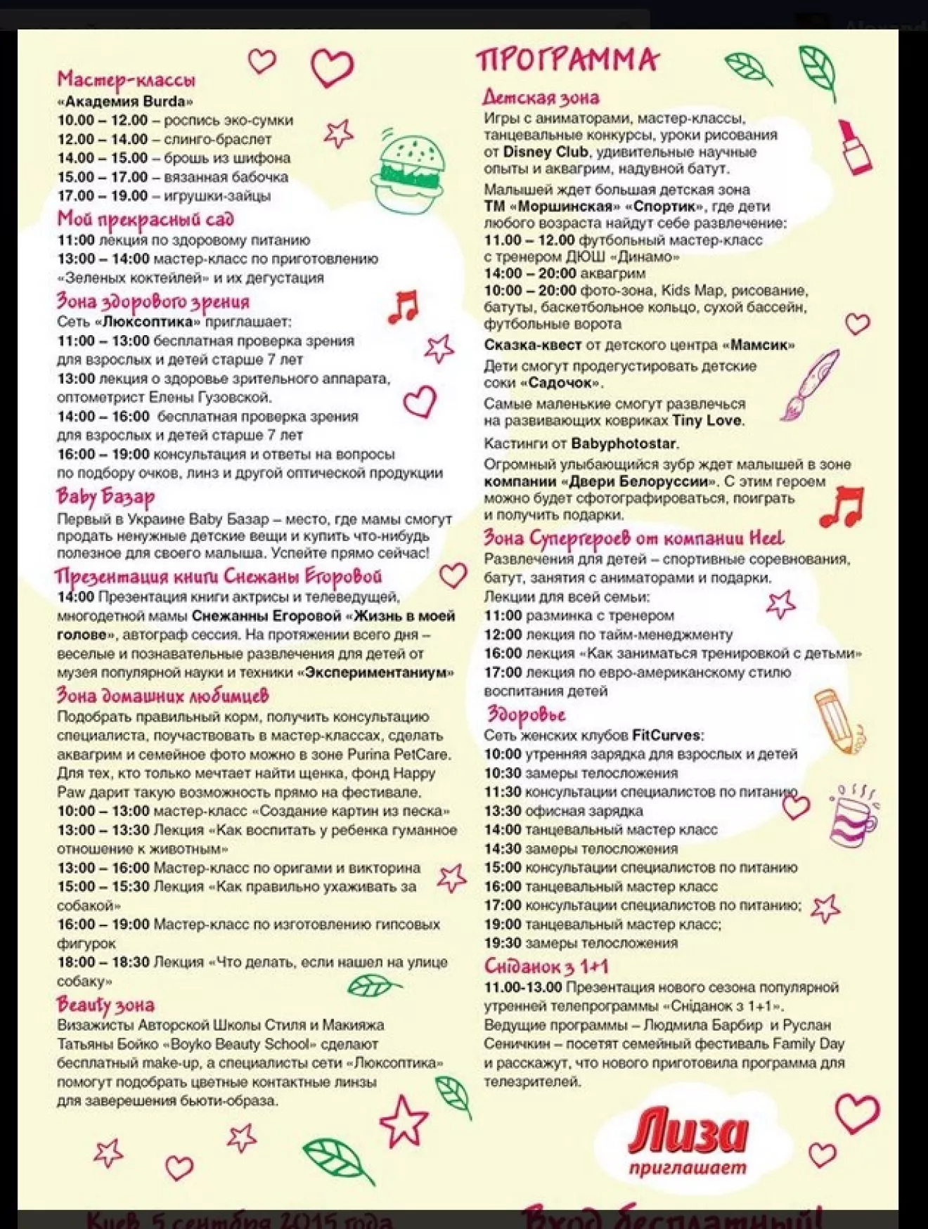 — зона здоровья, танцевальные мастер-классы, зарядка