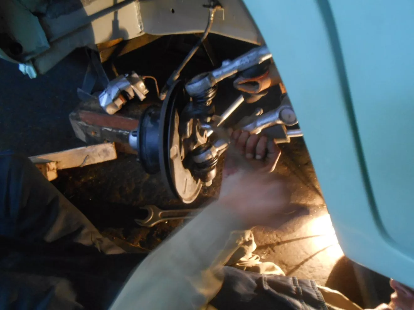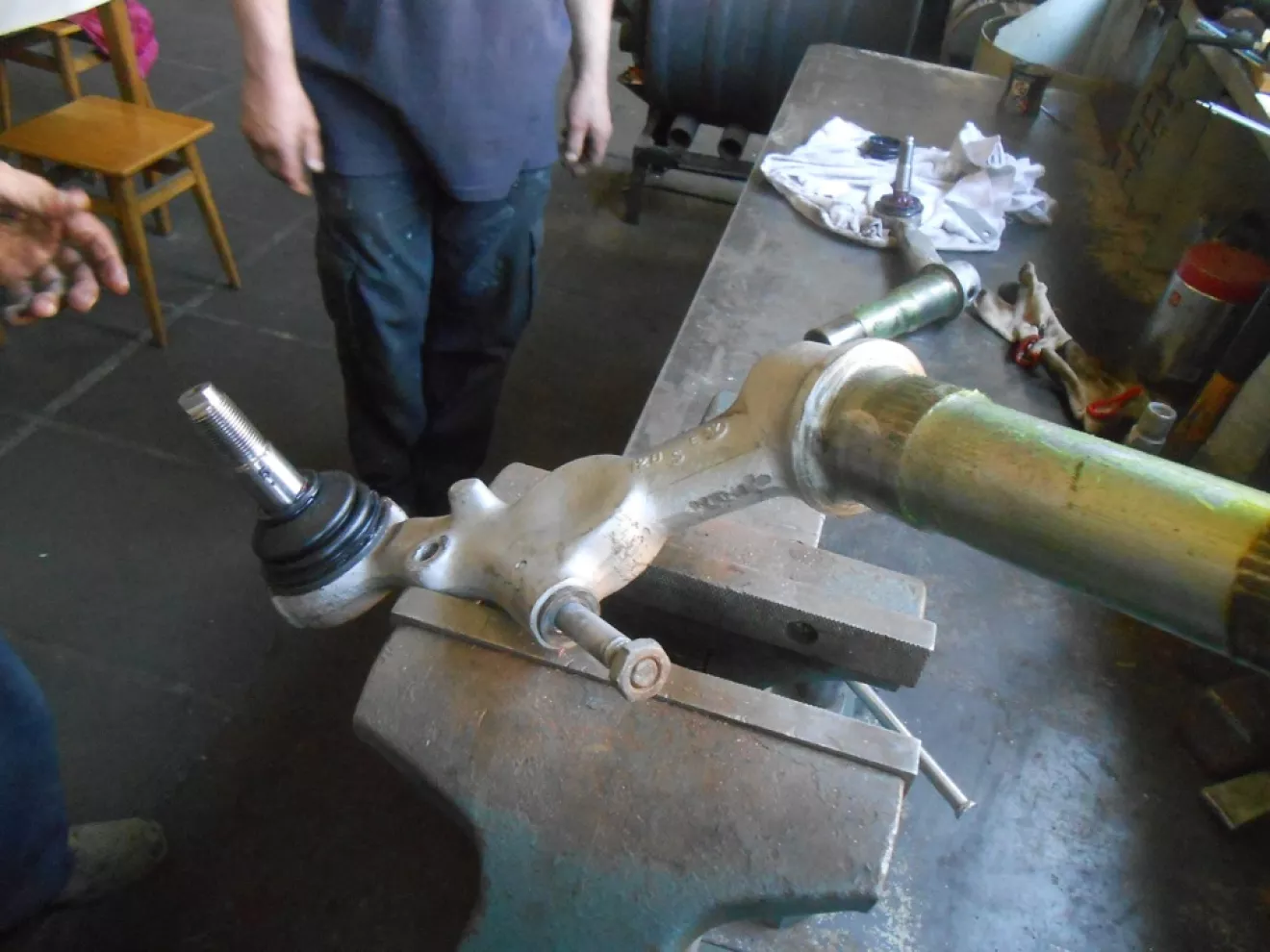Прикинув что машина попала в страну в начале девяностых прошлого века, то как минимум 23 года для шаровых опор многовато))) Плюс, сколько они там побегали в Австрии . Решение — меняем ! Изъяли варварским способом их из рычагов, срезав бурт, потому как оправки до сих пор не вернули . Запресовали новые . Собрали подвеску . Выехав на *испытательный полигон* в лес, был приятно удивлён — всё тихо . Да, всё оригинальное не вечно, НО ! это же четверть века эксплуатации ) Я восхищаюсь тобой *Сарайко* ! Настоящий крепыш )))