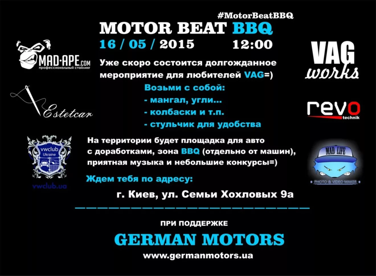 Сейчас всё происходит впервые ))) Наш первый выезд и первое фото уже умытого бусяги . *Сарайко* пригласили в гости на Motor Beat BBQ в German Motors . Мы в восторге от происходящего праздника . Лично я о таком даже и не мечтал, но так получилось в эту субботу . Огромное спасибо организаторам этого прекрасного и шумного барбекю пати и лично Саше MadLifeProd www.drive2.ru/b/1987552/, спасибо замечательному автосалону VW и его коллективу, спасибо VAGworks, VW Club, Mad-Ape и Estetcar, всем участникам ! Ждём видео и фото, всем — PEACE )