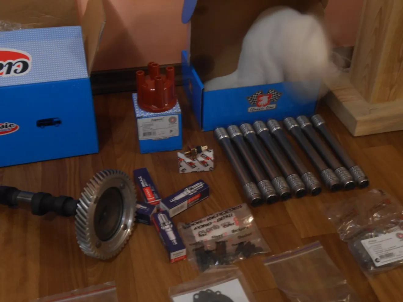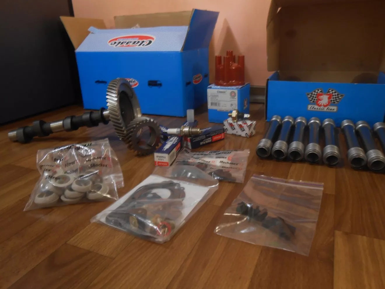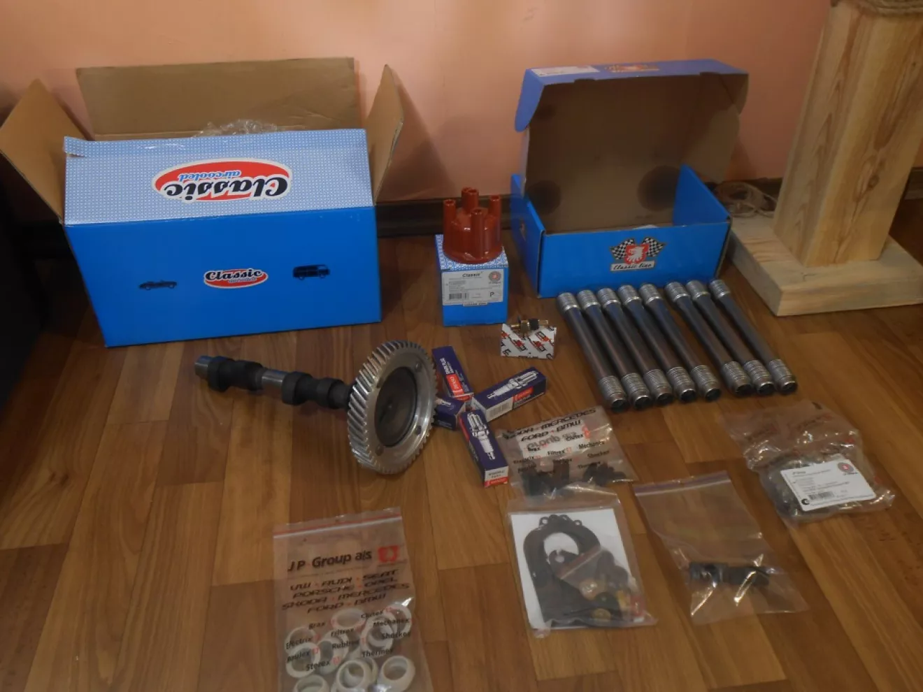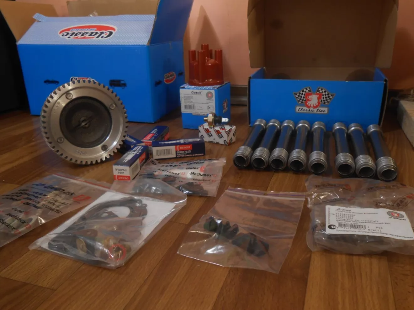 Новые теплообменники наилучшего качества, фирмовый глушак с комплектом арматуры, ещё головки блока цилиндров *маде ин Бразилия* для друганофф, нью зеро распредвал + нью толкачи + пара шестерён к нему, масляный насос, провода, свечи, защитные трубки штанг, шапка трамблёра, держачки проводов
