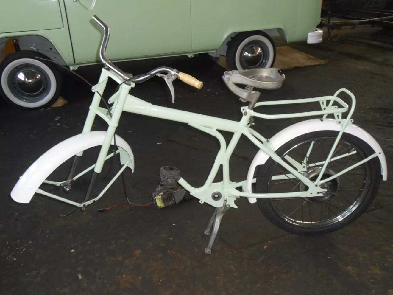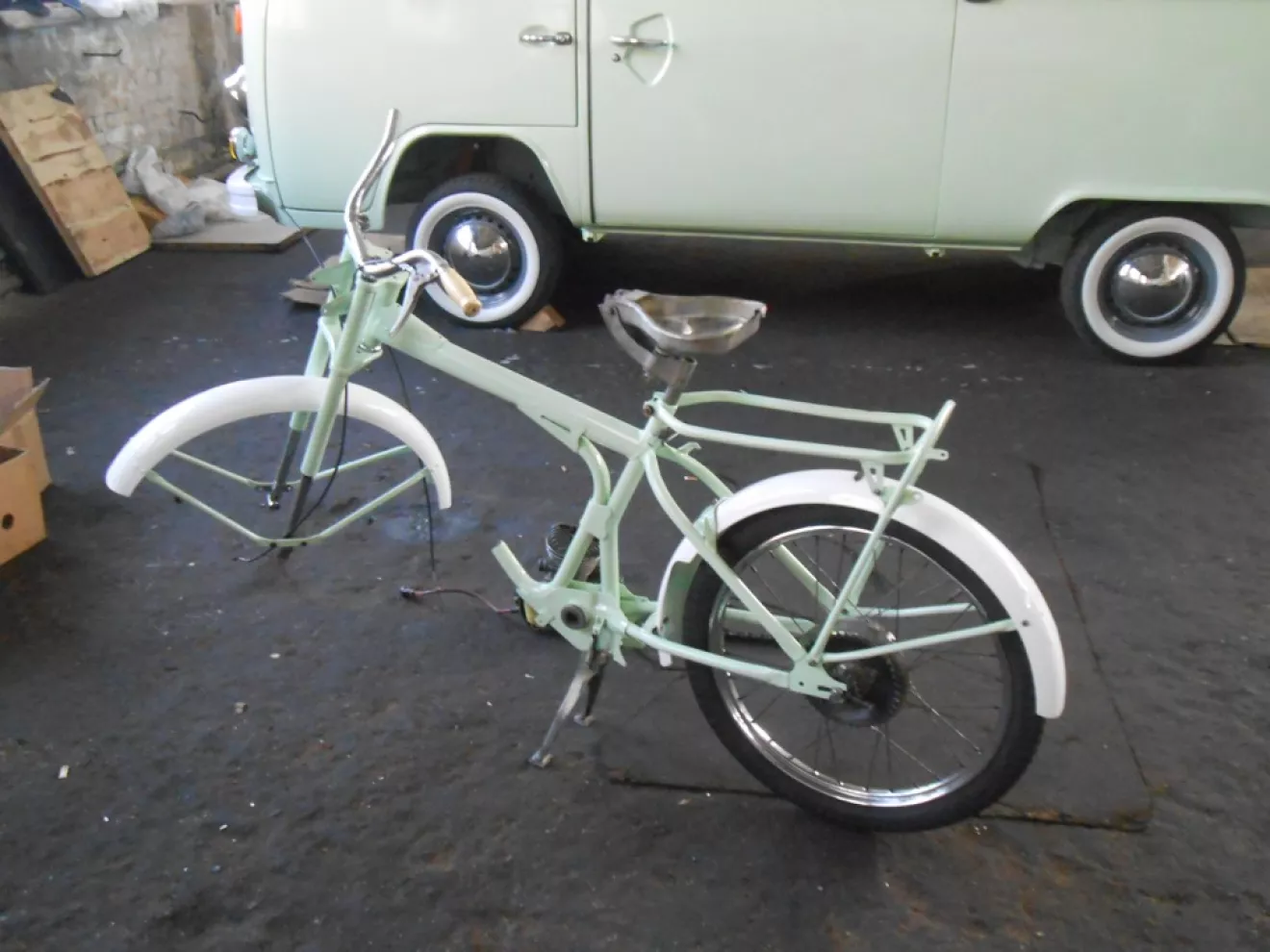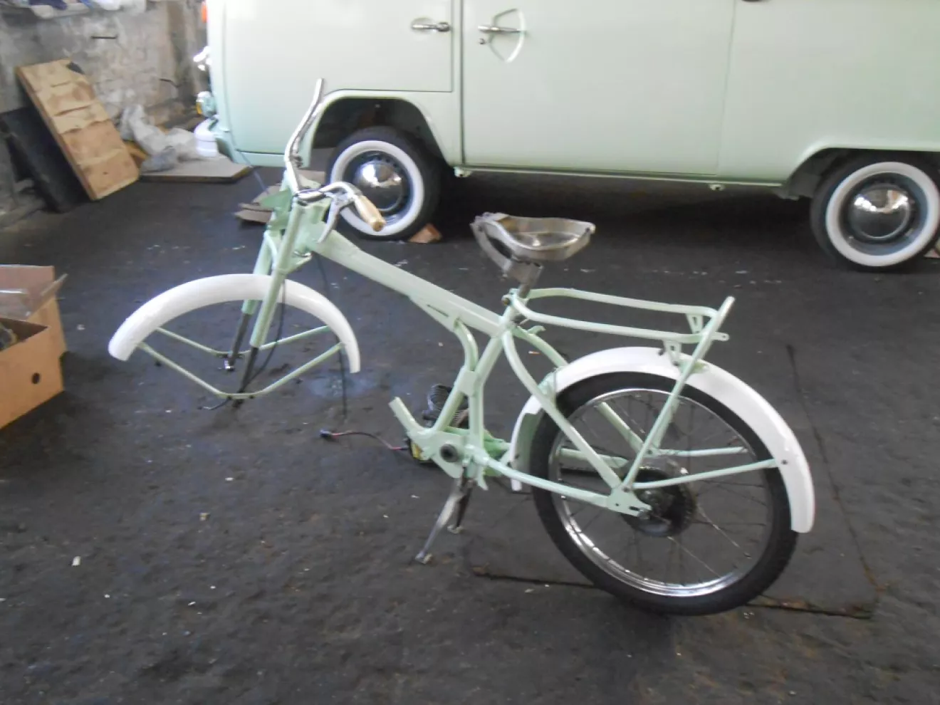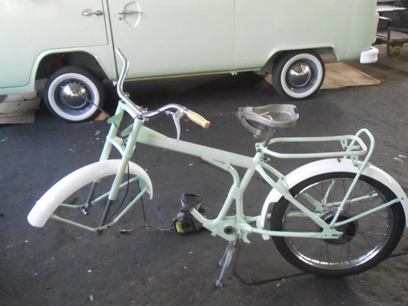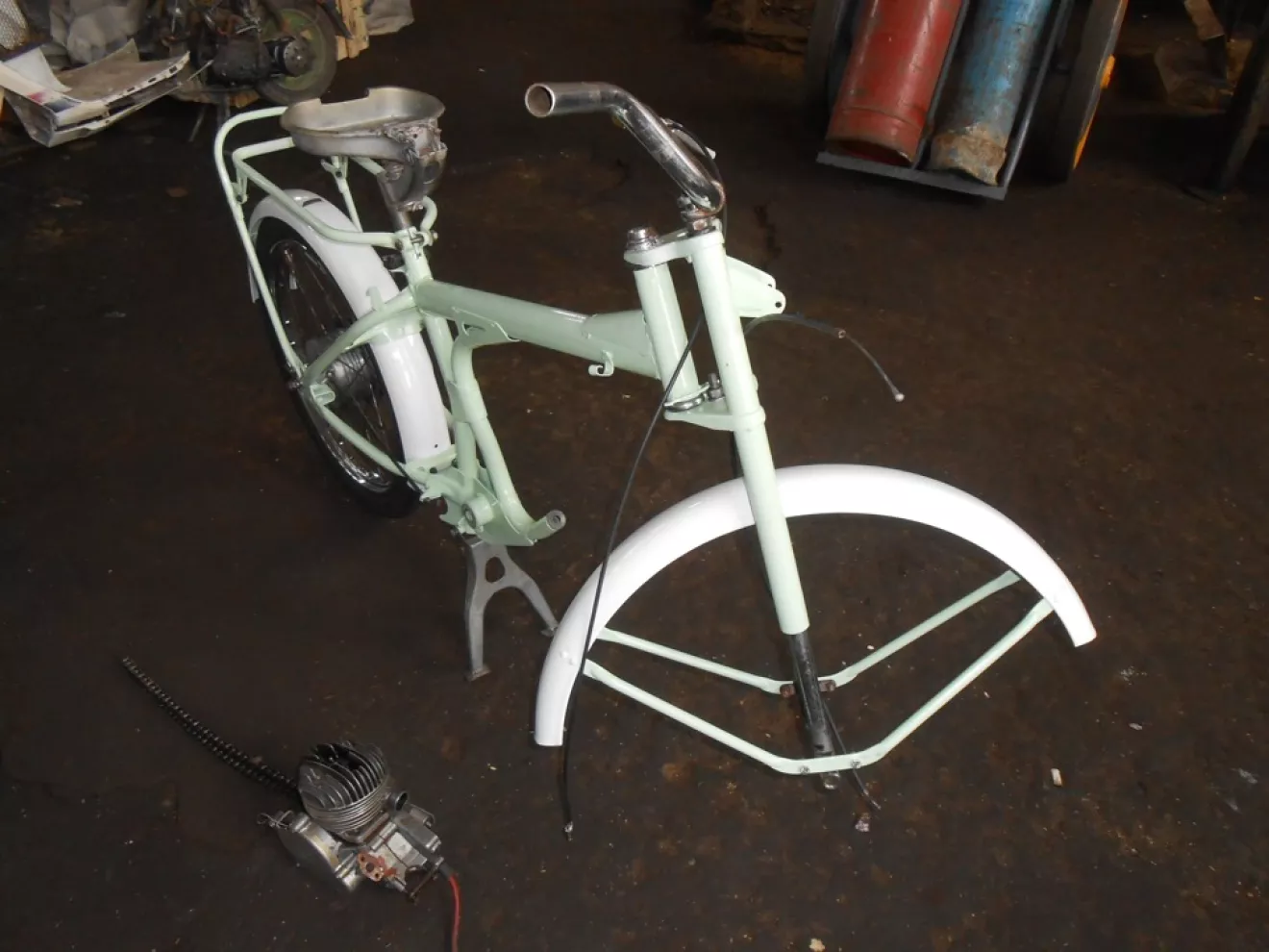В планах новый дрыг, бак и переднее колёсико реставрируем, сидуху сами зарукастим, а вот окрас стилизировали под бусягу .