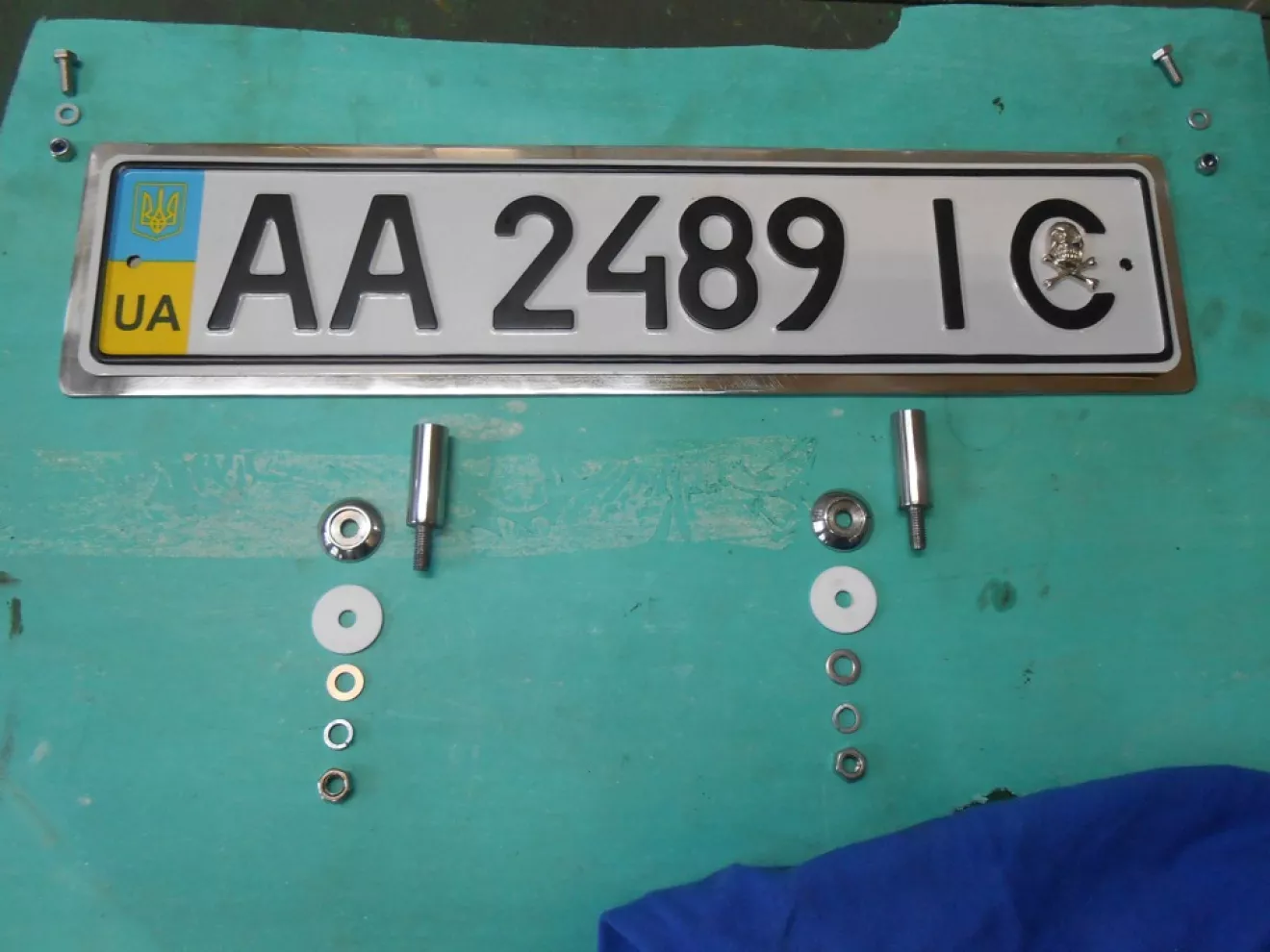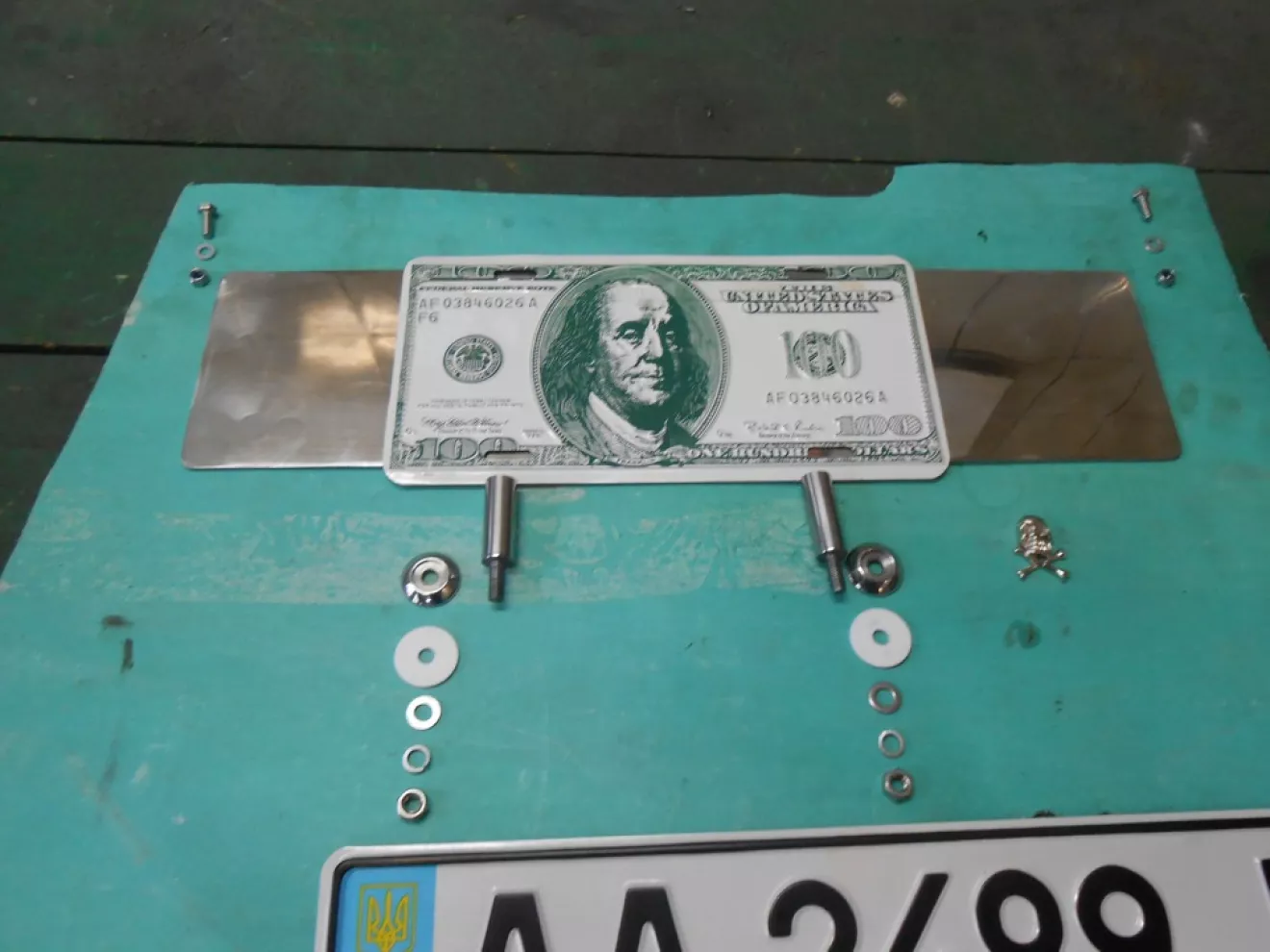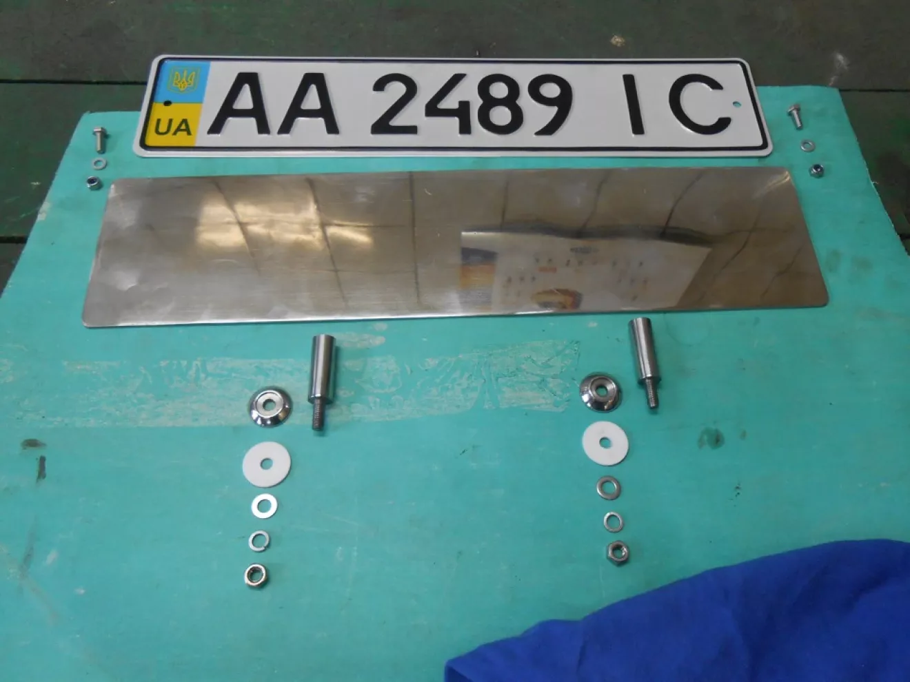 Токарных дел мастер молча выслушал мои видения по поводу таблички под номер, забрал заготовки и так же молча удалился прогревать станок) . В первой части он показал фокус — покус на своём станке, заготовки были не только изготовлены, но и отполированы до зеркала . Так же были изготовлены беленькие фторопластовые прокладки под стойки . Немного раньше я заглянул в метизную лавку и купил нержавеющих гаек, шайб, болтов . Всё получилось . Следующий шаг — приварка стоек к виновнице этого беспредела — табличке . Но при примерке стоек на бампер оказалось, что профиль его не имеет ровной горизонтальной поверхности . Соответственно номер будет ужасно наклонен вперёд — в цеху раздался ржач . Как можно было это не учесть, все дела начинаются с фундамента . Пьём кофе, смеёмся, решаем стойки вверху сточить под угол во столько-то градусов . Точило рулит — градус от балды, попадаем чётко в правильный угол . Если бы замеряли, точно накасячили))) Мегасварщик забрал полуфабрикат . Я видел этот мышинный феерверк . Сварные швы были зачищенны и отполированны им же . Друзья, не знаю зачем это всё рассказываю, но лично мне понравился сам процесс создания этого по сути не очень важного для *Сарайко* девайса . В очередной раз взрослые дядьки подурачились и провели весело время . А что ? ))) В создании этого супербыстрого проекта принимали участие восемь человек, я умираю от смеха, не смотря на то, что у каждого из них была масса своей работы и задач — они с огромным желанием помогли мне воплотить эксперимент в жизнь . Парняги, ОГРОМНОЕ ВАМ СПАСИБО !)))