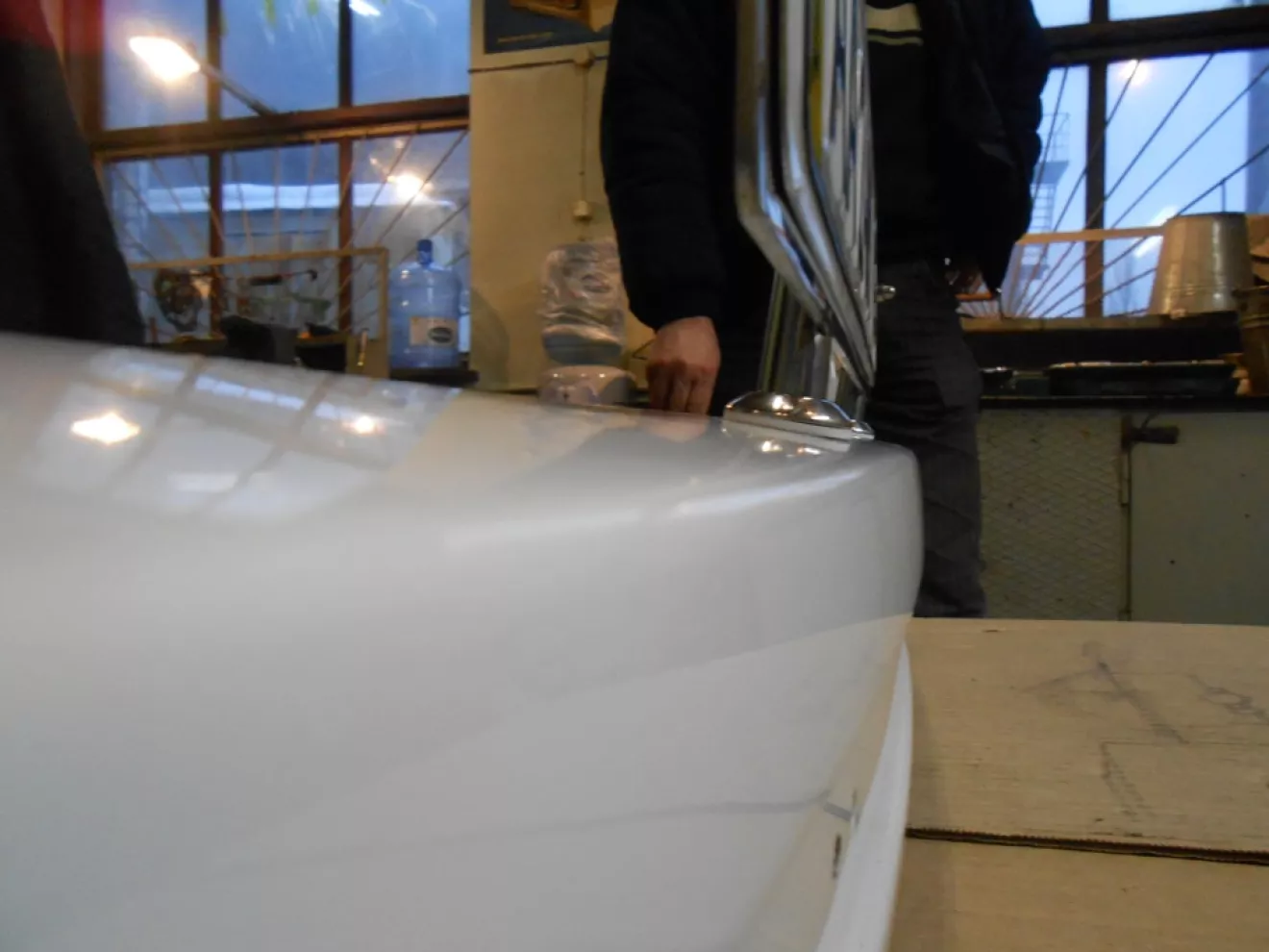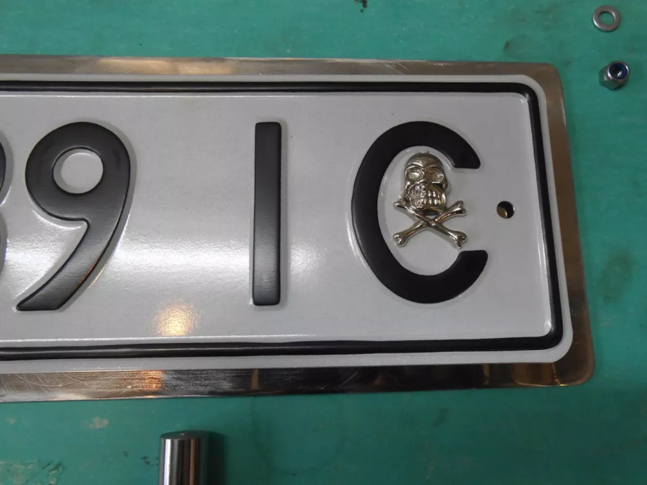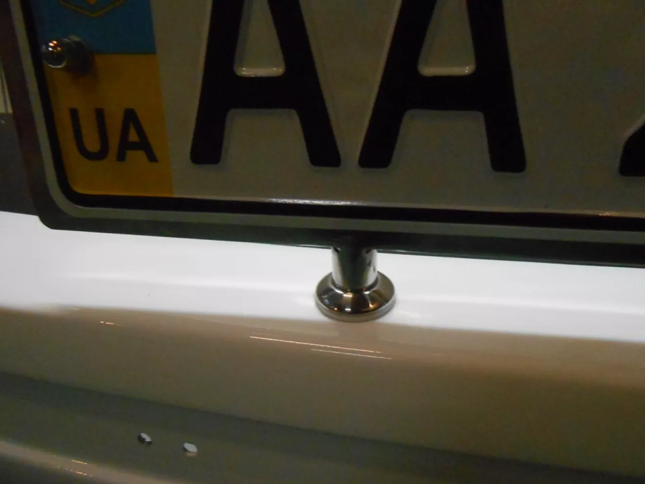 Токарных дел мастер молча выслушал мои видения по поводу таблички под номер, забрал заготовки и так же молча удалился прогревать станок) . В первой части он показал фокус — покус на своём станке, заготовки были не только изготовлены, но и отполированы до зеркала . Так же были изготовлены беленькие фторопластовые прокладки под стойки . Немного раньше я заглянул в метизную лавку и купил нержавеющих гаек, шайб, болтов . Всё получилось . Следующий шаг — приварка стоек к виновнице этого беспредела — табличке . Но при примерке стоек на бампер оказалось, что профиль его не имеет ровной горизонтальной поверхности . Соответственно номер будет ужасно наклонен вперёд — в цеху раздался ржач . Как можно было это не учесть, все дела начинаются с фундамента . Пьём кофе, смеёмся, решаем стойки вверху сточить под угол во столько-то градусов . Точило рулит — градус от балды, попадаем чётко в правильный угол . Если бы замеряли, точно накасячили))) Мегасварщик забрал полуфабрикат . Я видел этот мышинный феерверк . Сварные швы были зачищенны и отполированны им же . Друзья, не знаю зачем это всё рассказываю, но лично мне понравился сам процесс создания этого по сути не очень важного для *Сарайко* девайса . В очередной раз взрослые дядьки подурачились и провели весело время . А что ? ))) В создании этого супербыстрого проекта принимали участие восемь человек, я умираю от смеха, не смотря на то, что у каждого из них была масса своей работы и задач — они с огромным желанием помогли мне воплотить эксперимент в жизнь . Парняги, ОГРОМНОЕ ВАМ СПАСИБО !)))