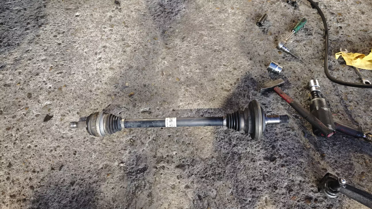 Щоб дістатися до сальника, довелося відкручувати ричаги і виймати привід повністю. Просто “висмикнути” його з редуктора не вийшло - банально не вистачає місця. Трохи розібрали пів підвіски -і тільки тоді все здалося.