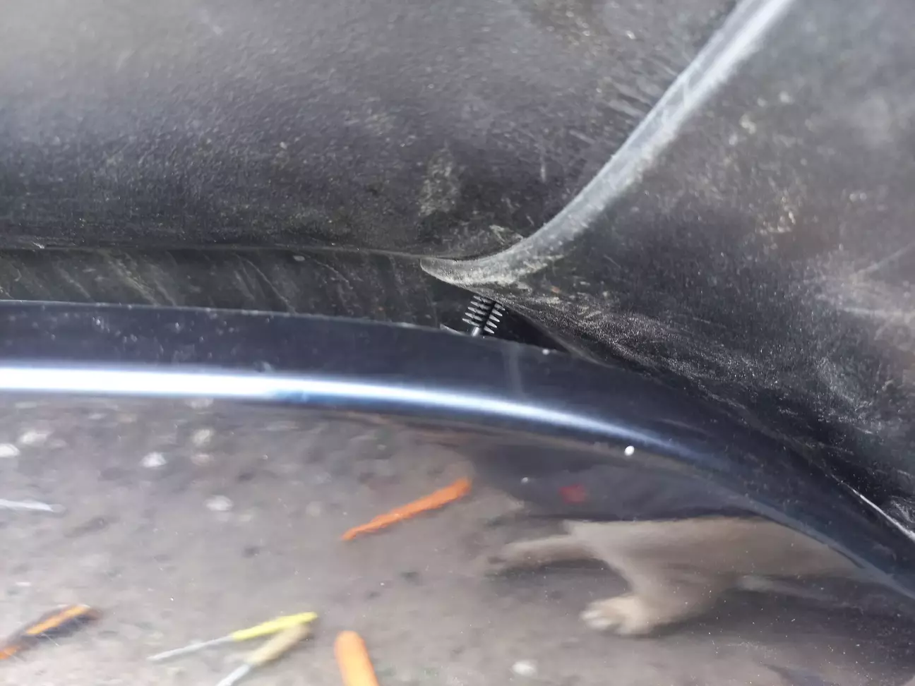 Чотири розпірні кліпси та один штатний саморіз для кріплення по внутрішній стороні. Додатково приклеїв двостороній скотч по площині бампра.