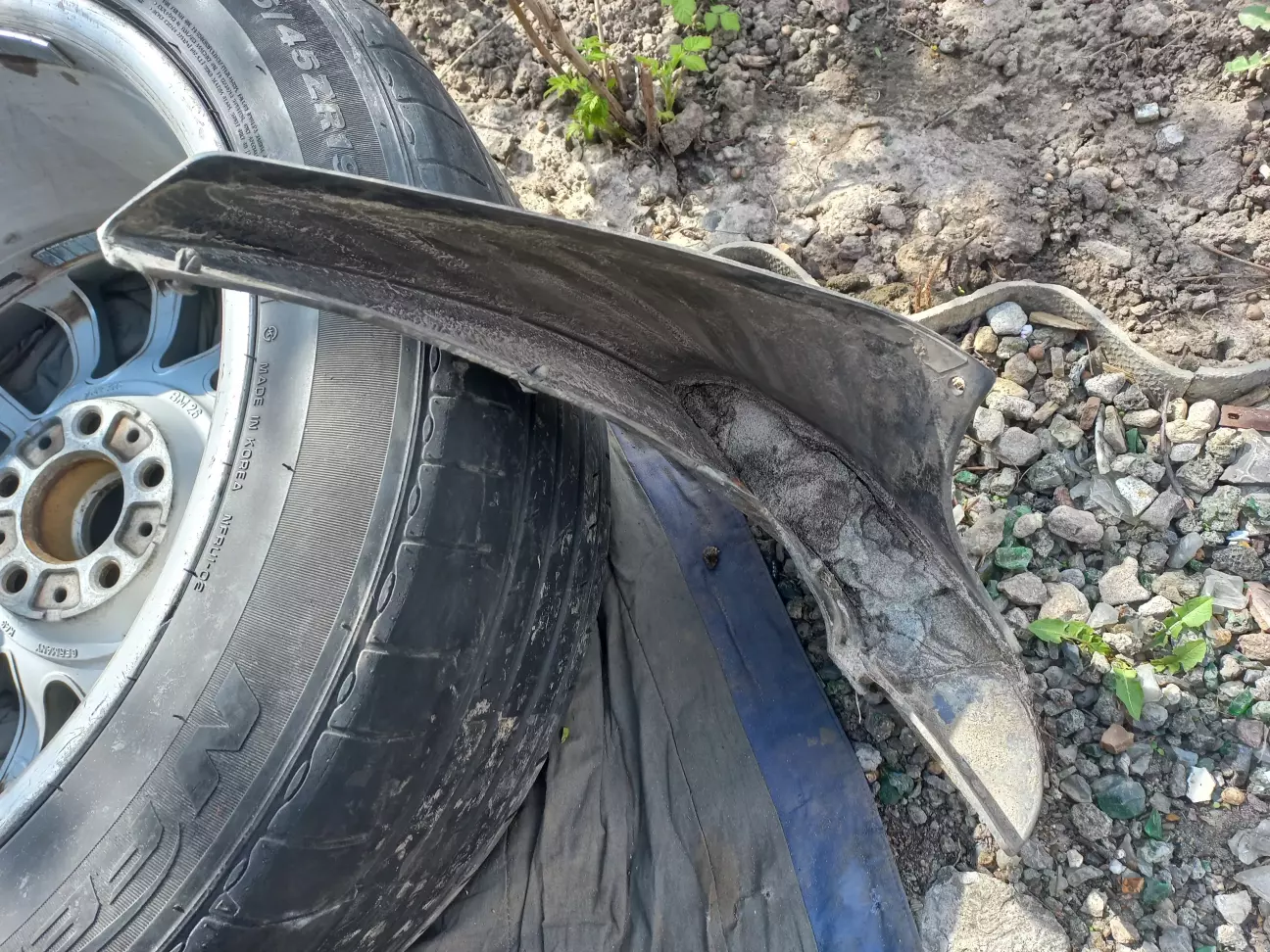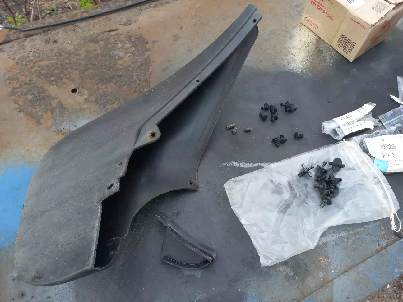 Правий бризговик тримався лише на 1 саморізі і "чесному слові" ) Тому всередину набилося піску, аж до самого верху.
