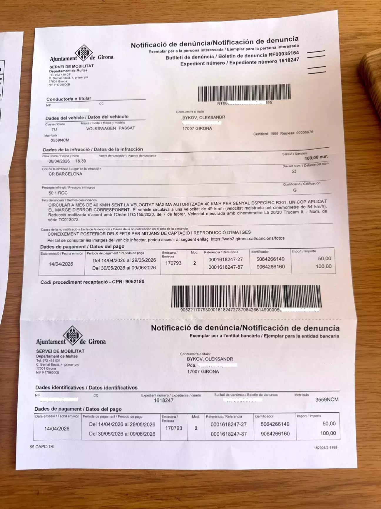 Тож, маємо штраф в €50, якщо заплачу до кінця травня, якщо ні, то буде €100.