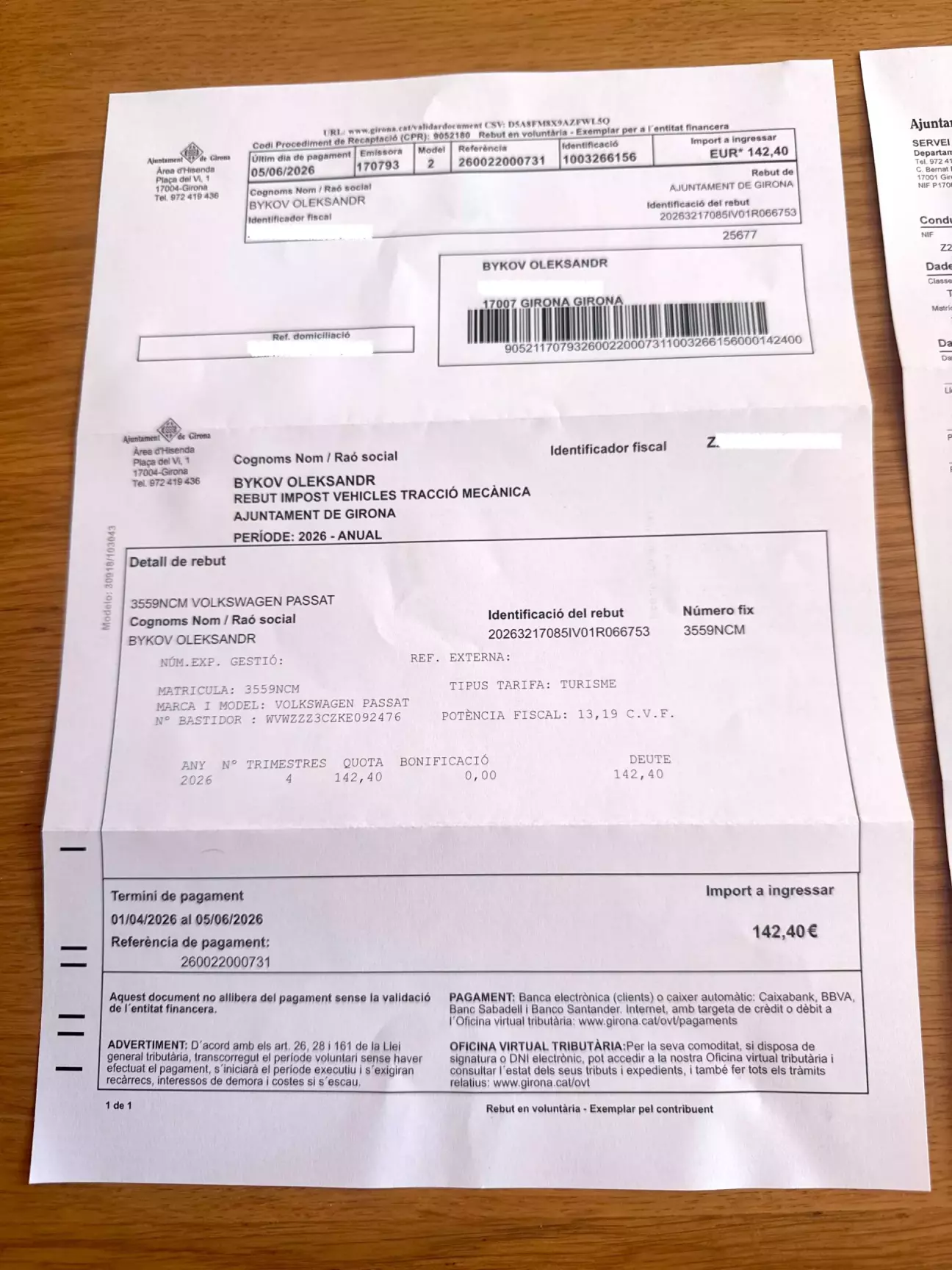 Коротше, тут в цій Іспанії, треба платити податок за автомобіль, він платиться раз на рік. Минулий рік, мені допомогли його оплатити, коли я пригнав машину, а тут вже сам маю. Я дуже переживав щоб не пропустити цю оплату, бо потім буде штраф. Тож задовбав всіх сусідів із машинами та менеджера який мені допомагав пригоняти авто рік назад.