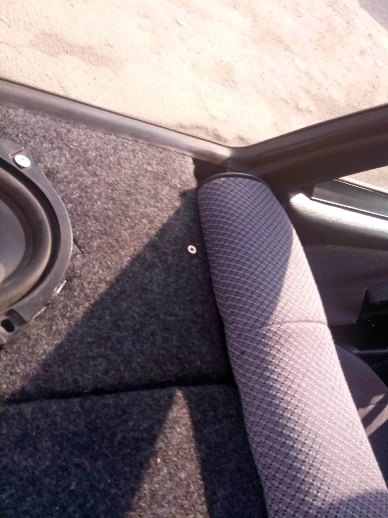 Использовать уголок, который был в комплекте для крепления я не стал, а установил на три самореза, каждую из боковин. Один в кузов над фарой, и два в железную хрень к которой крепится спинка заднего сидения. Ремни задние пришлось снять, т.к. не влазят овалы с ними.