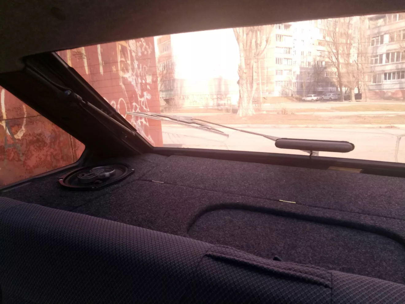 — Сама полка крепится к боковинам на липучках, которые при езде по немецким автобанам может и выполняли бы свою роль, но в суровых запорожских окопах — совсем нет. Особого неудобства это не создаёт, но в зеркало видно пляску откидной части, благо без звукового сопровождения. Решать это думаю путем проклейки уплотнителя между крышкой багажника и полкой, зазор там весьма маленький. Ну и какие-нибудь магниты, вместо липучки;