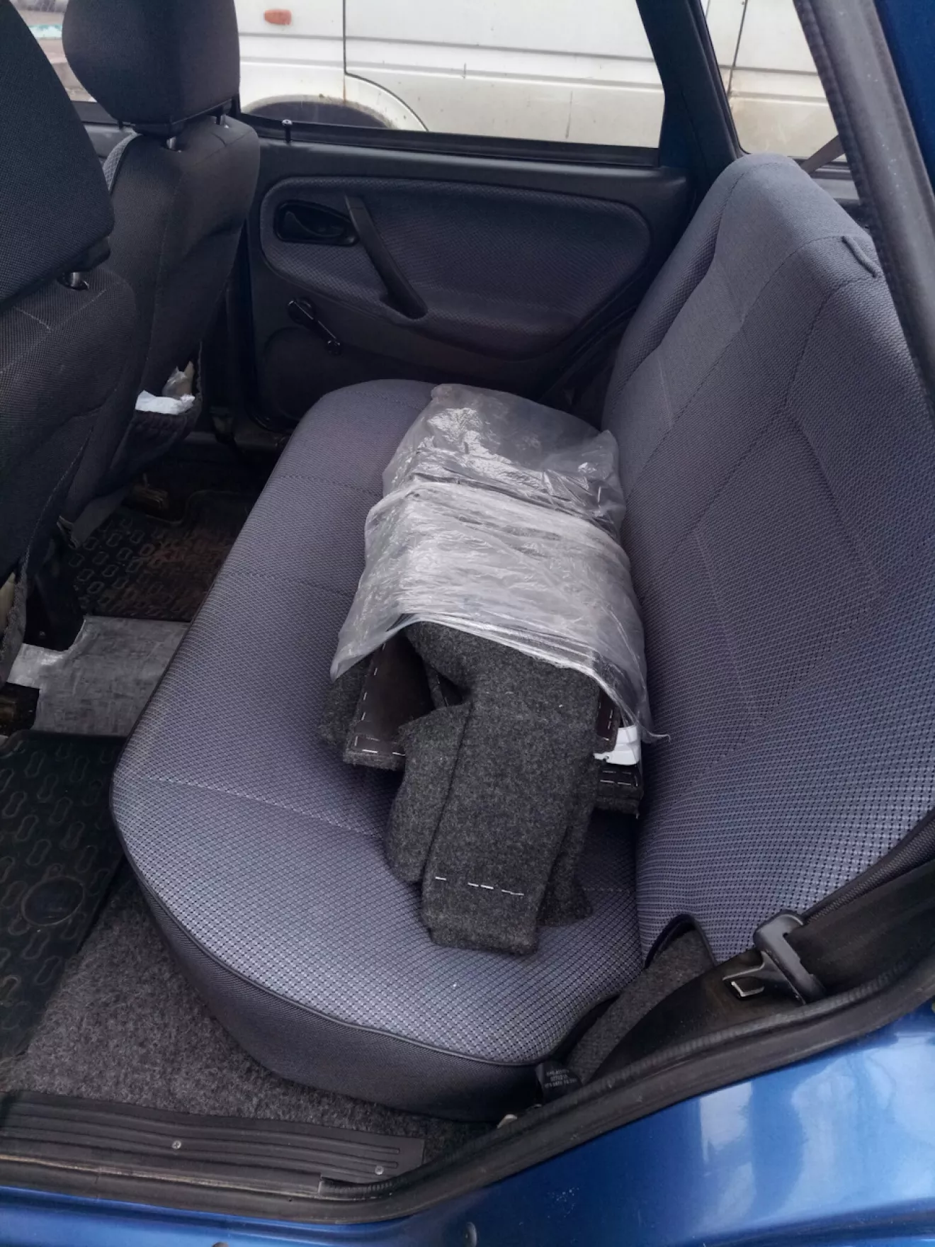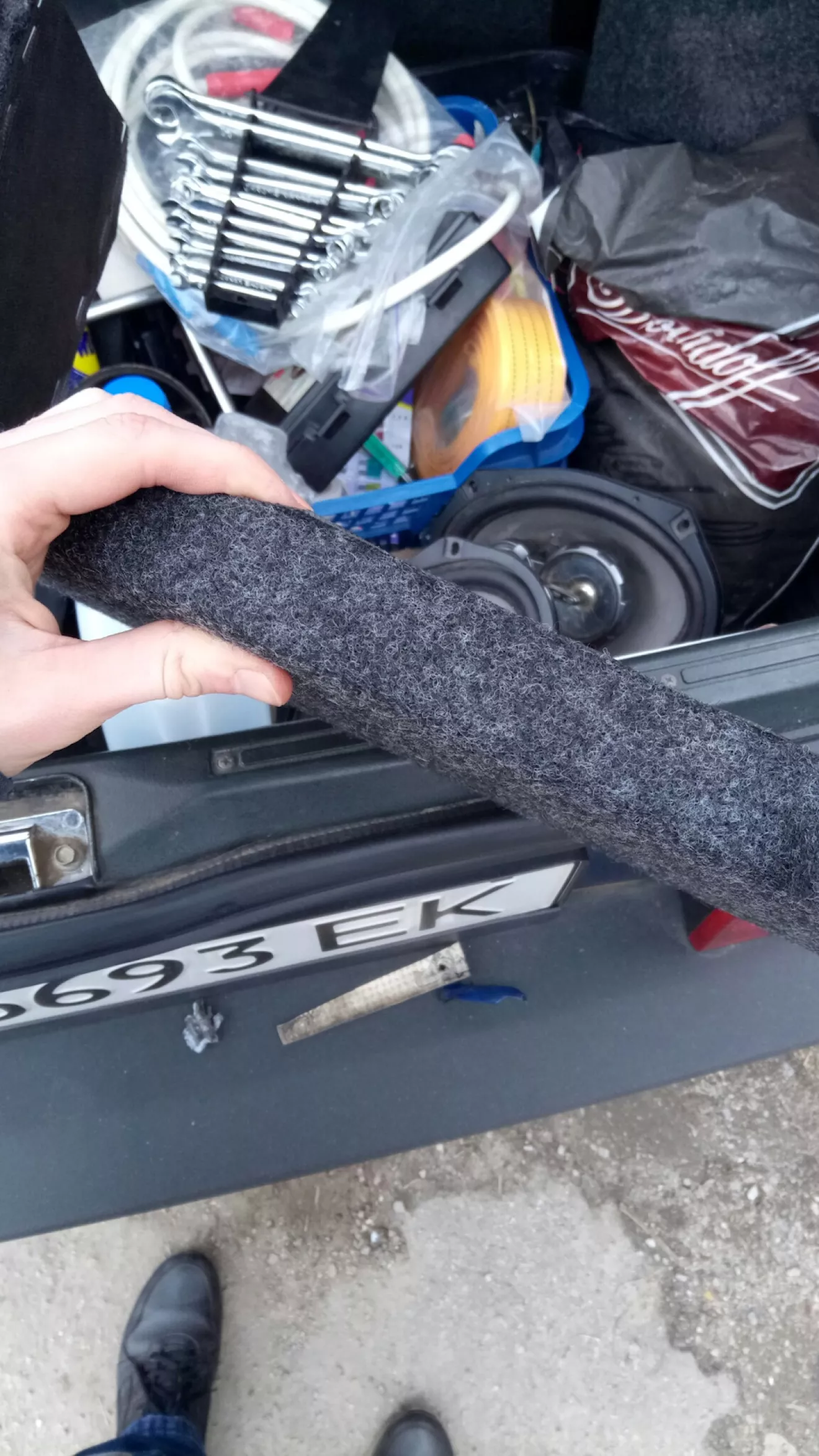 Ну и раз затронул тему полки — надоел скрип заднего пластика, который есть у каждого. Поэтому демонтировали старую полку, боковины пластиковые, и задние ремни безопасности.