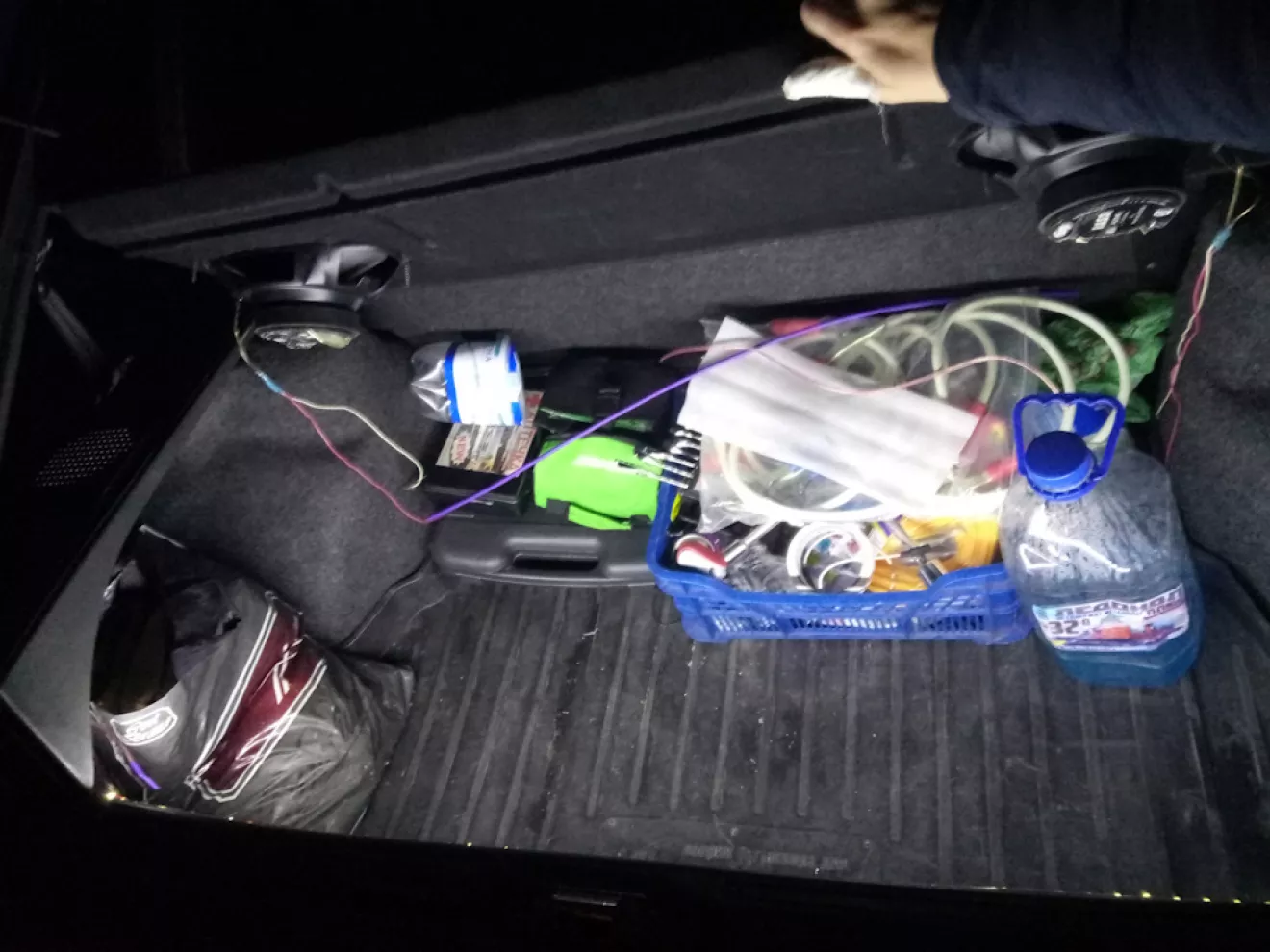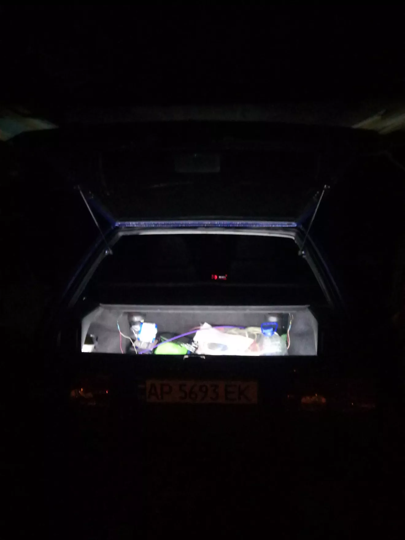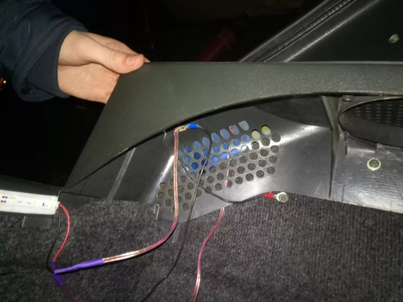 Провода спрячу под ковёр багажника, сейчас уже пальцы не гнулись на морозе, чтоб красиво оформить.