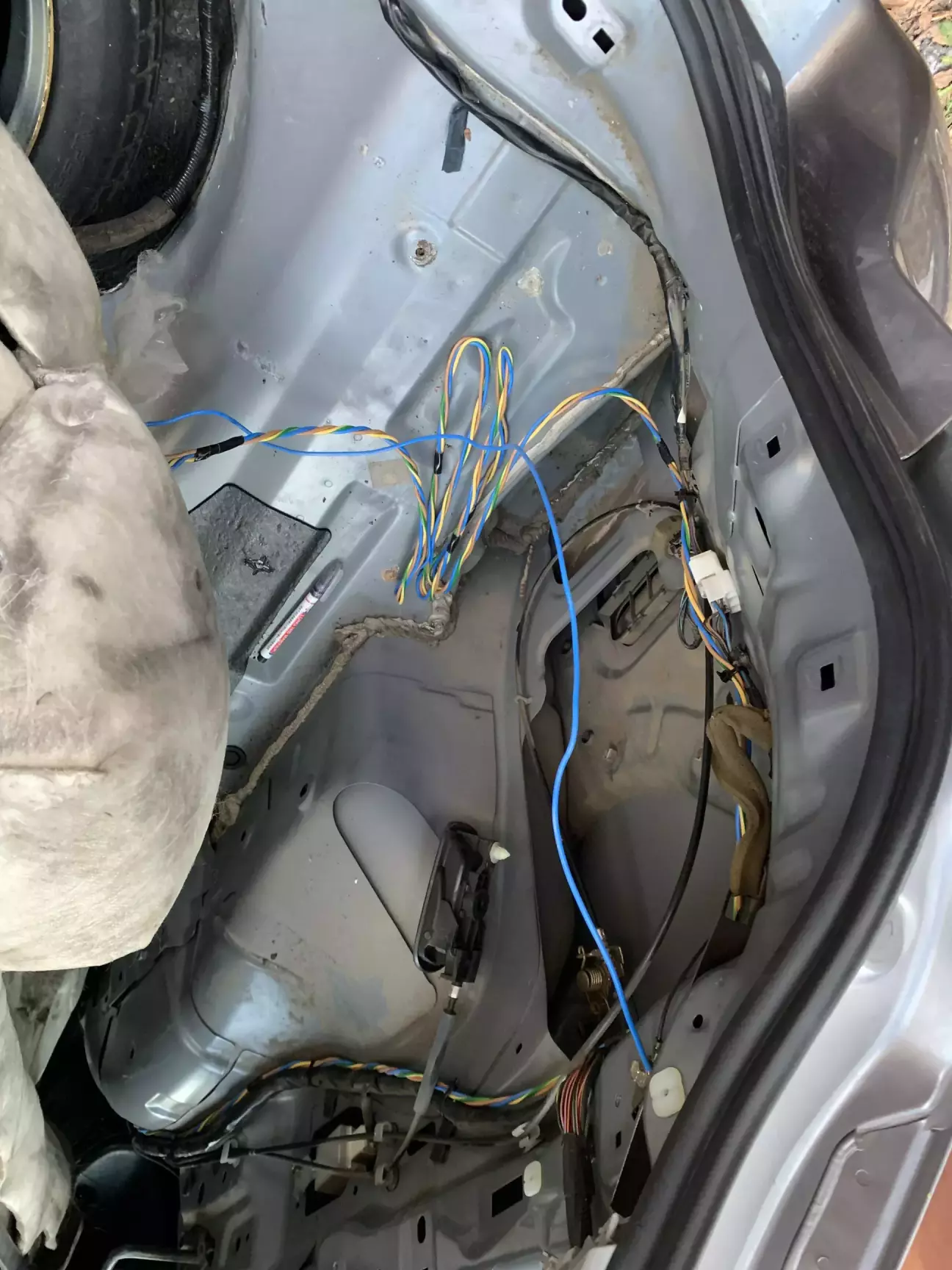 то ж і вирішив використати провід ПВС 3*1,5, попередньо знявши з нього додаткову білу ізоляцію, для зменшення його зовнішніх розмірів, скрутивши три жили в джгут, періодично «перемотуючи» ізолентою для кучності. Три жили вирішив використати, на всякий випадок, щоб вдруге не розбирати салон, у випадку, коли ще щось захочу в багажнику підключити.