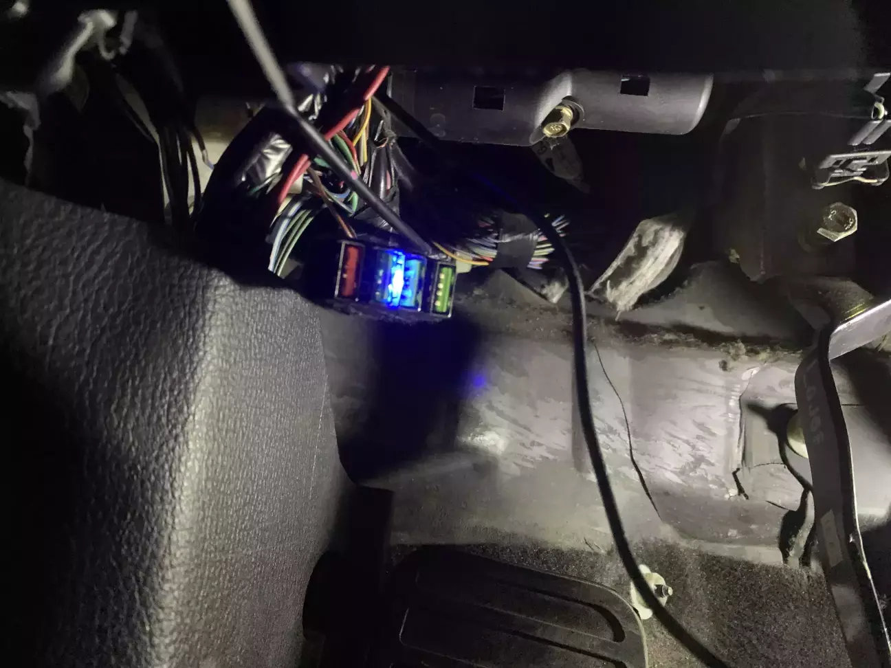 Допоки збирав салон, згадав за свою іншу задумку, а саме Додаткові USB-порти для підключення додаткових приладів, що мають живлення від USB, тобто 5 В. Знайшов у себе зарядний хаб на 4 порти, припаяв 2 проводи для підключення. Плюс підключено до нової гілки для прикурювача, до того ж розгалуджувача Add-A-Fuse. Для безпеки і уникнення зайвого можливого шуму, хаб обгорнув тряпчаною ізолентою та закріпив до загальної коси дротів.