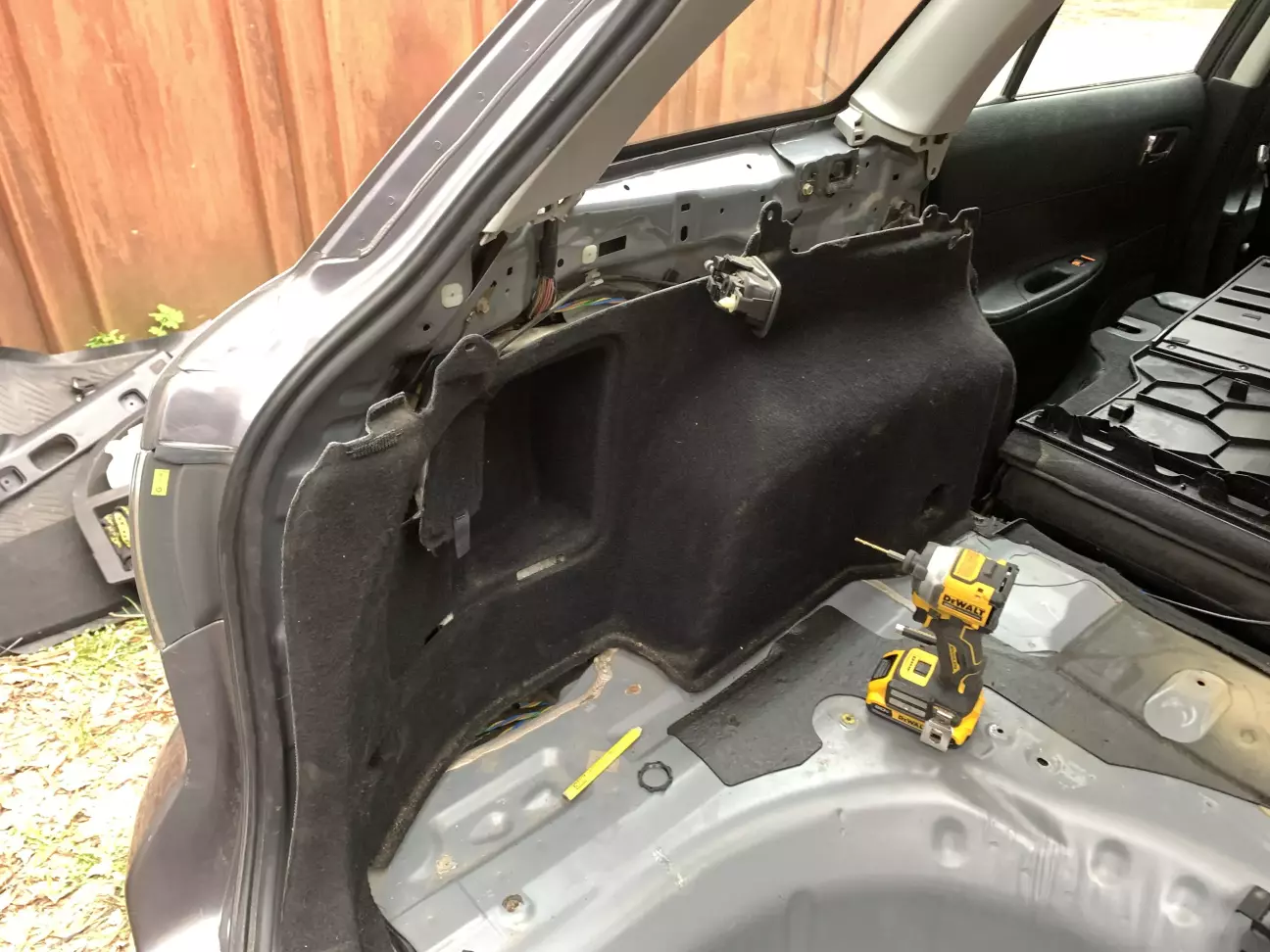 Розібрав ліву частину обшивки салону і багажника, і довго думав, визначався з місцем самої розетки.