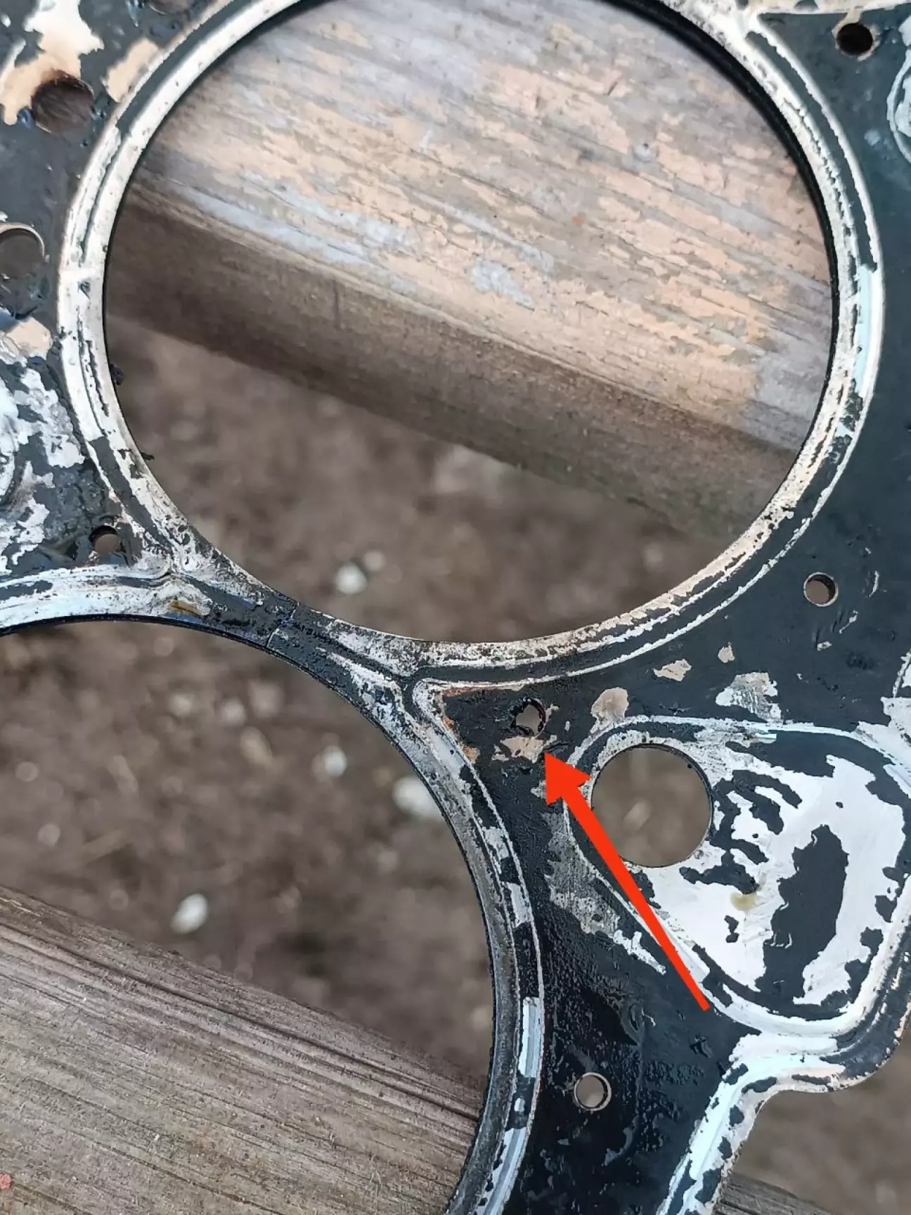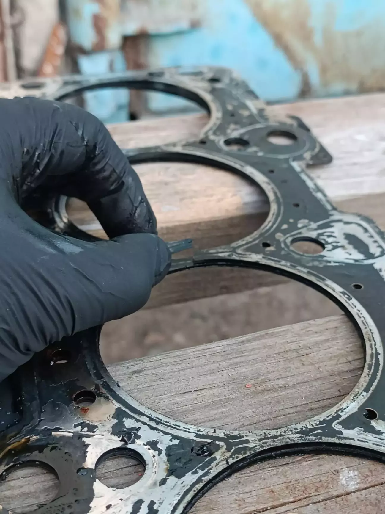 Середній виліт усіх поршнів показав 0,80-0,91 мм. Ідеальна кандидатура для прокладки на два отвори. Але забігаючи на перед, з ГБЦ зняли 0,13 мм. Тож перестрахуємося і беремо прокладку на три отвори.
