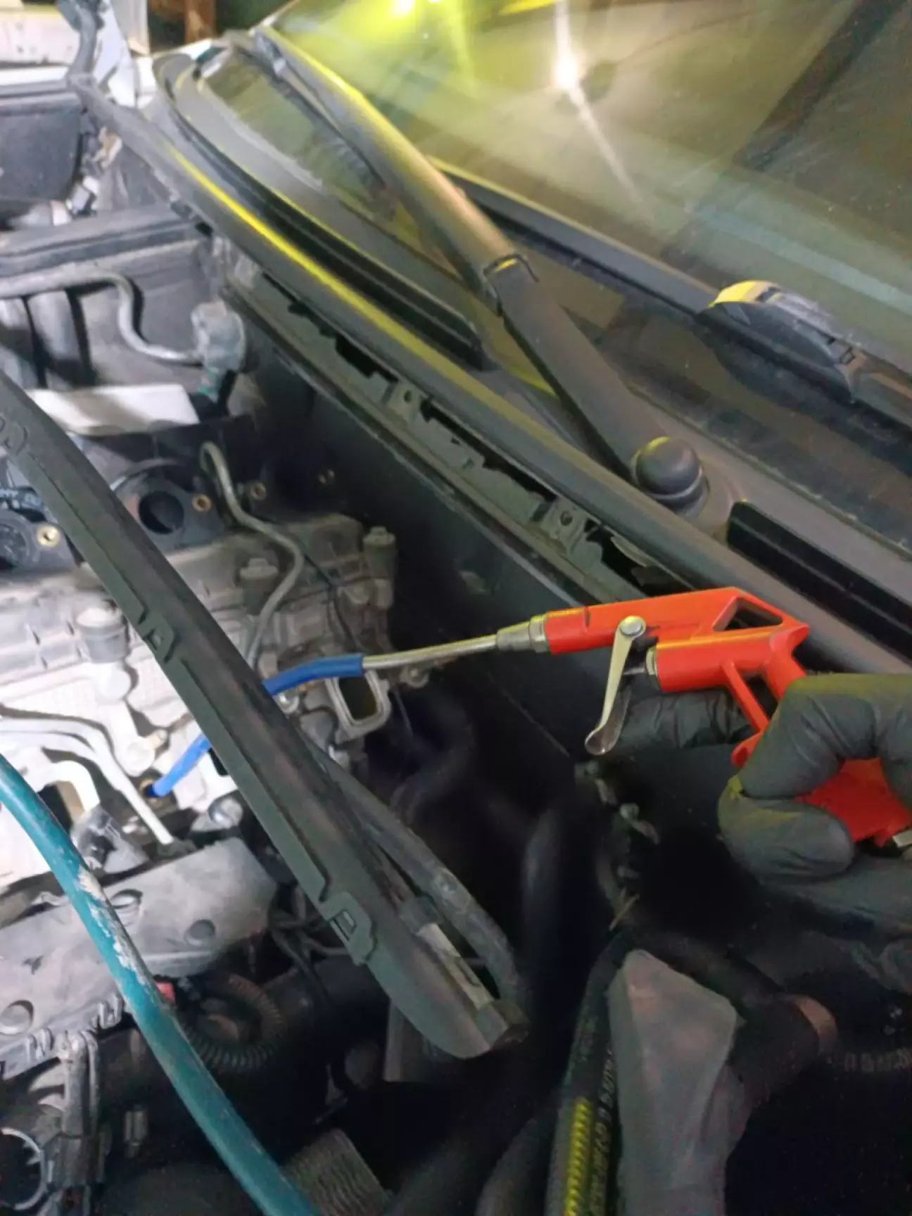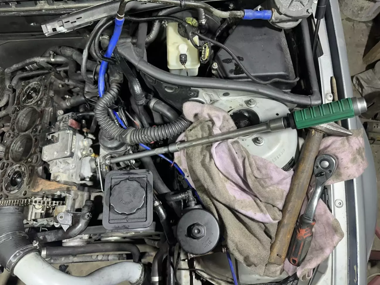 Відкрив розширювальний бачок, даю тиск і що ми спостерігаємо. 3-й циліндр, рідина в бачку піднімається. Тепер все зрозуміло остаточно) Як я не намагався обійти проблему, висновок був один. Пробита прокладка ГБЦ.