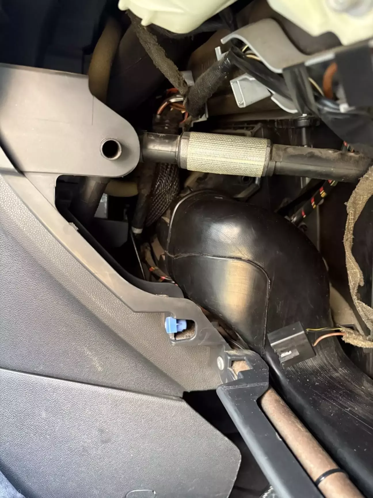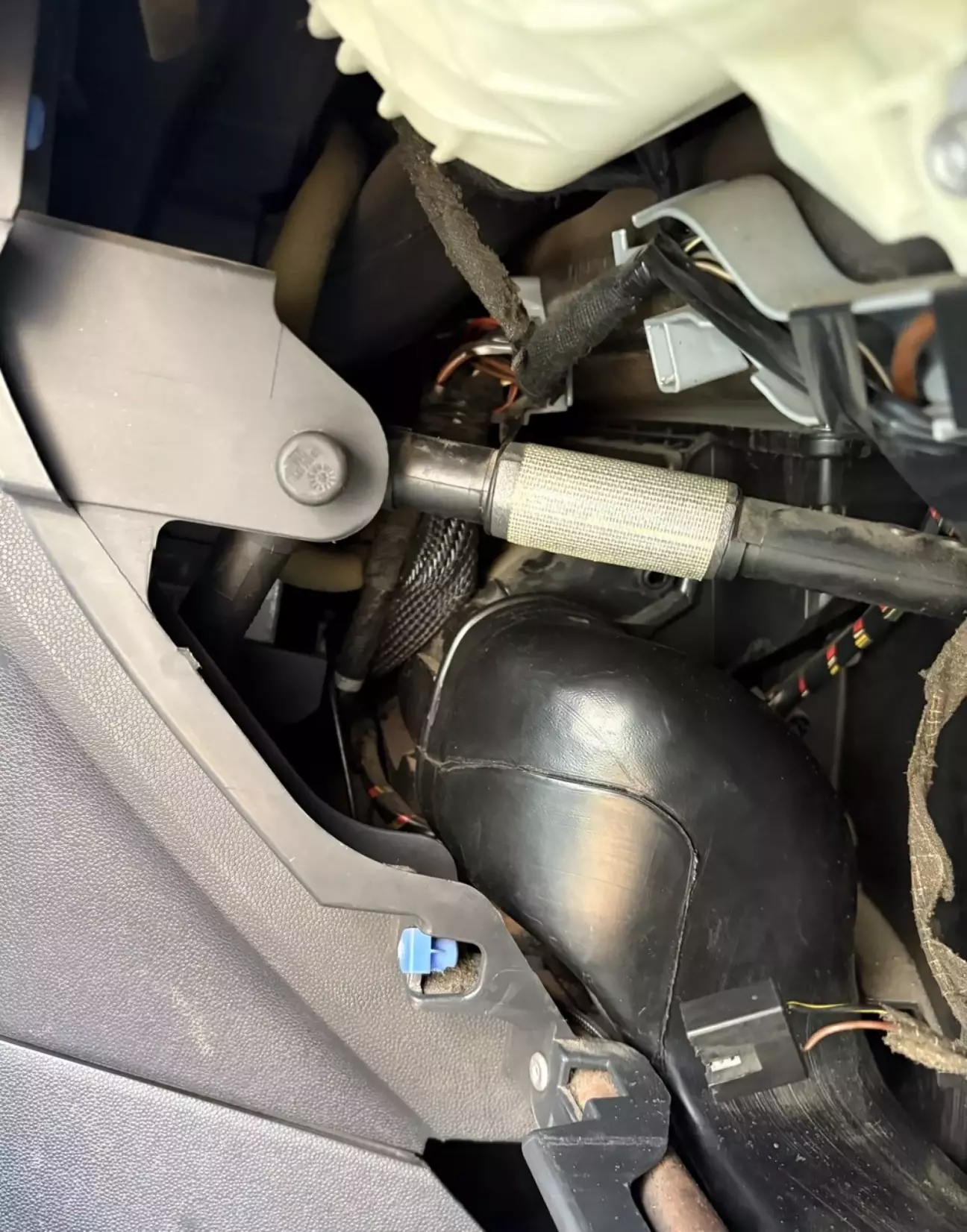 Снимаем бардачок, снимаем с трубки охлаждения резиновую крышку.