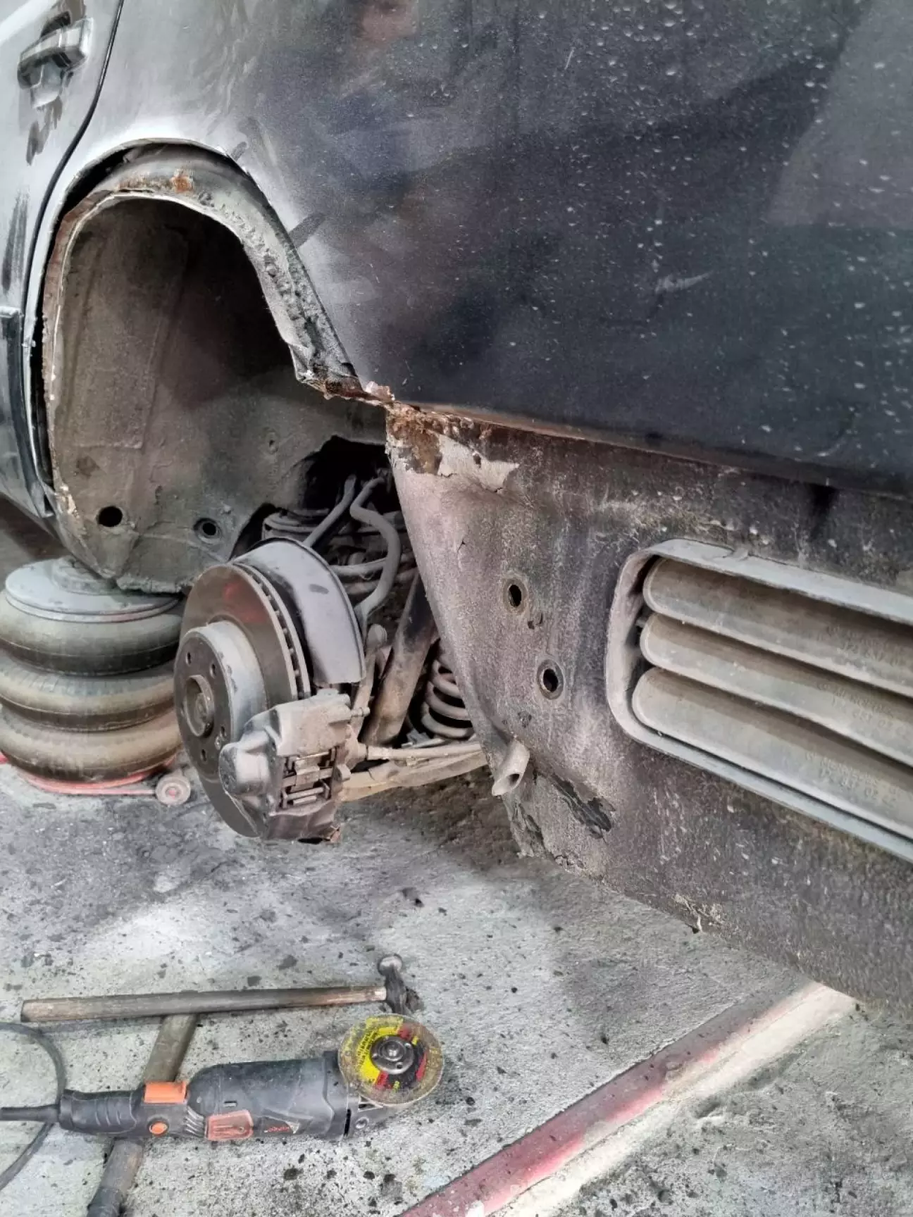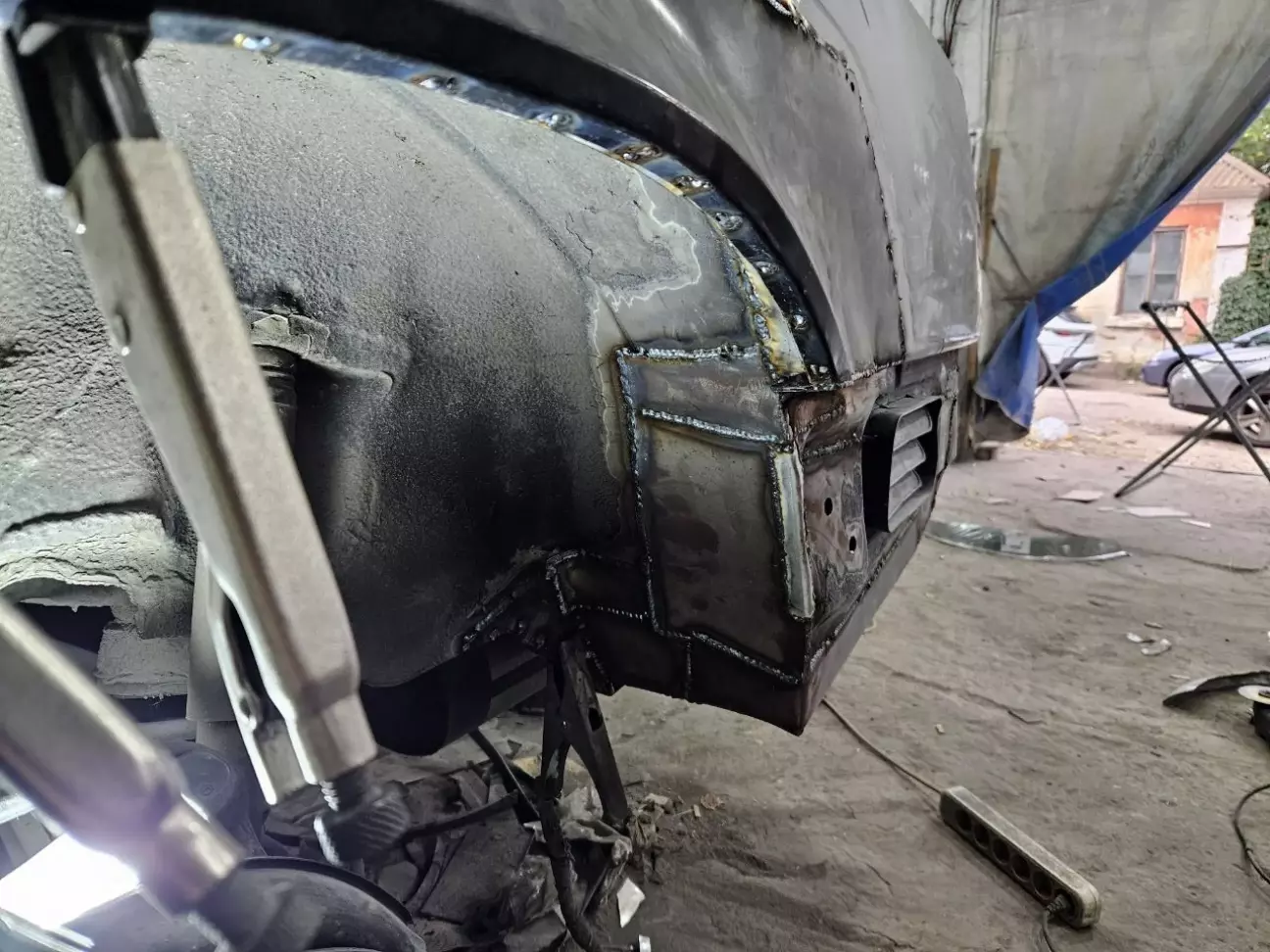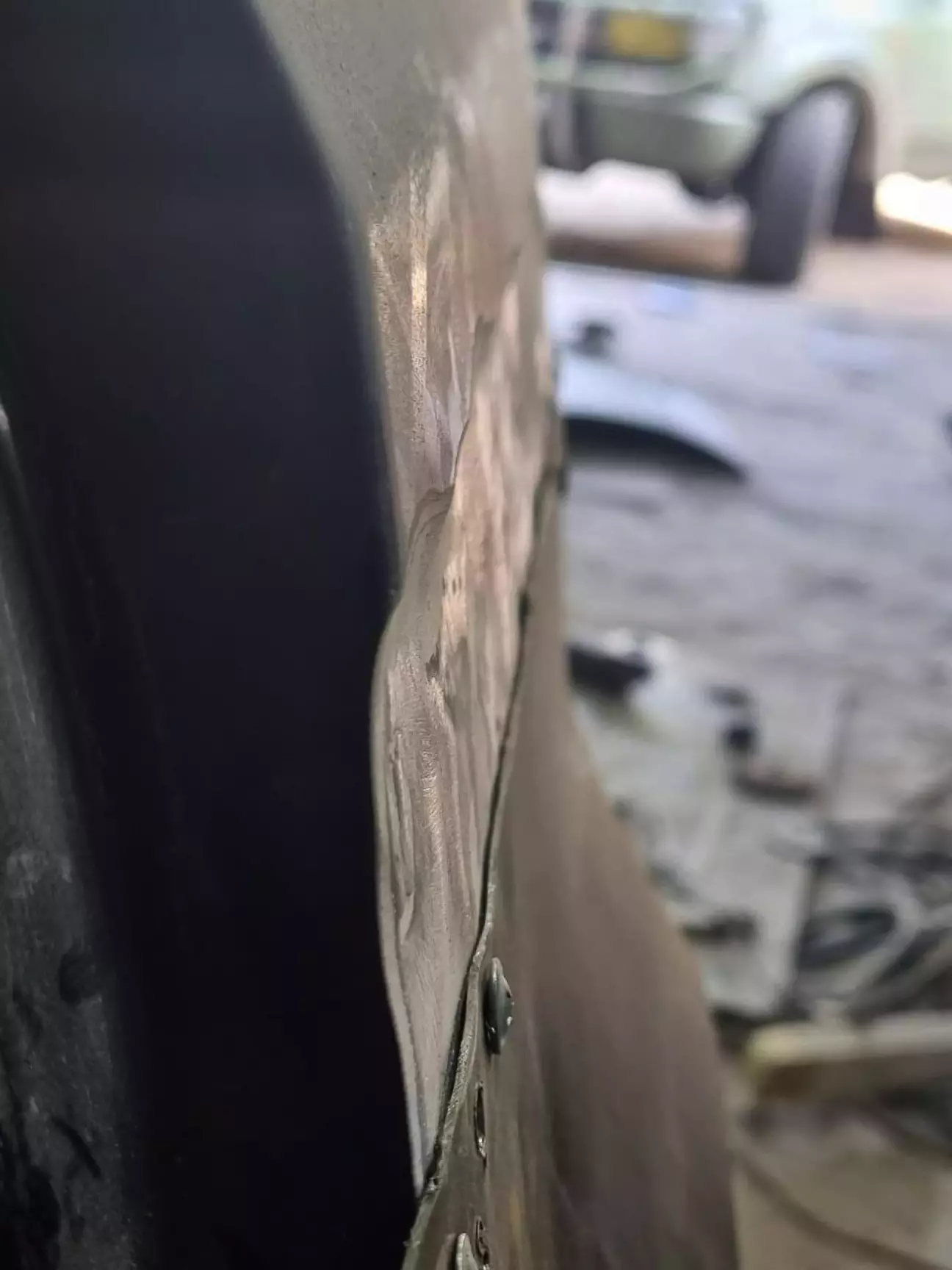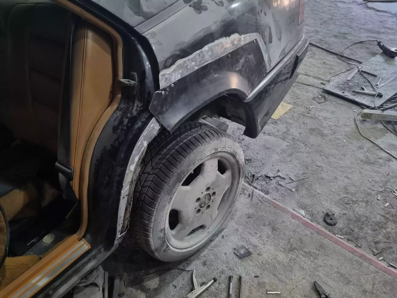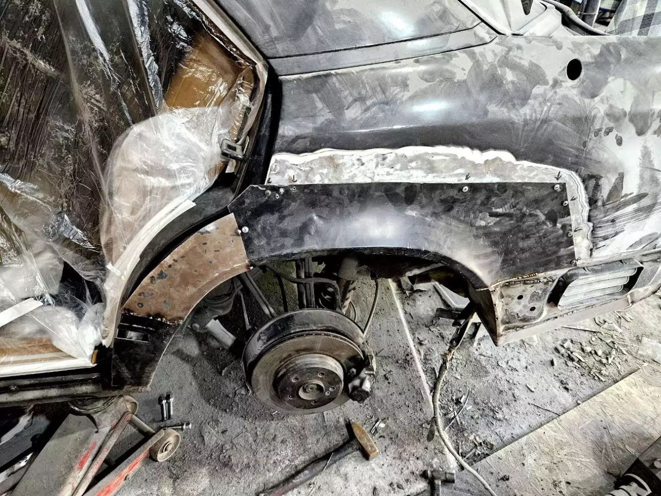 У одному з попередніх дописів про кузов (https://driver.top/exp/678155/) я розповідвав, що з водійського боку задня арка була у такій "дупі", що на неї навіть дивитись було лячно. Тому її лишили "на солодке". Але, як виявлось, пасажирський бік, не дивлячись на те, що арка виглядала краще, виявився гіршим за водійський. Коли маляр працював з пасажирською стороною, і йому, і мені здавалась, що з іншого боку роботи розтягнуться на місяці, бо доведеться по дрібних шматках збирати кузов. Тому цей момент постійно відклалався. Але якось я вирішую заїхати до Андрія на каву, і бачу таку картину: