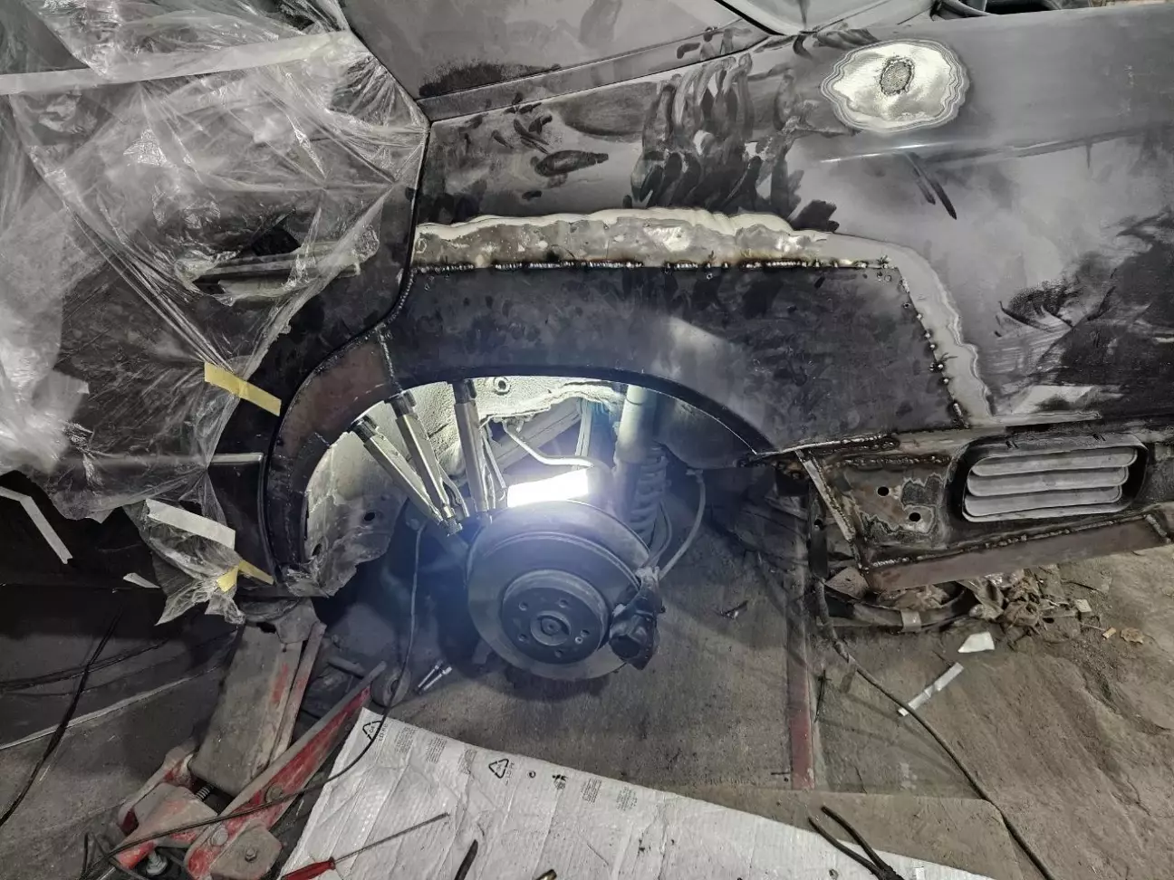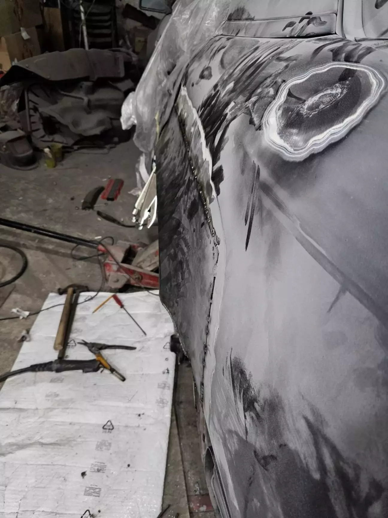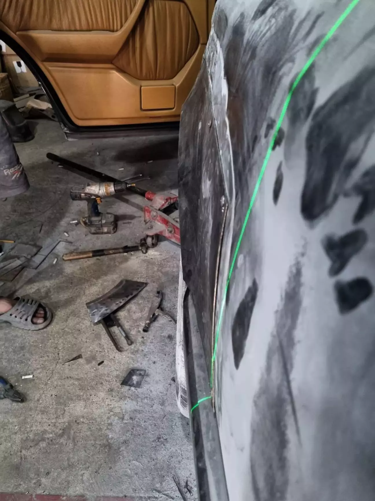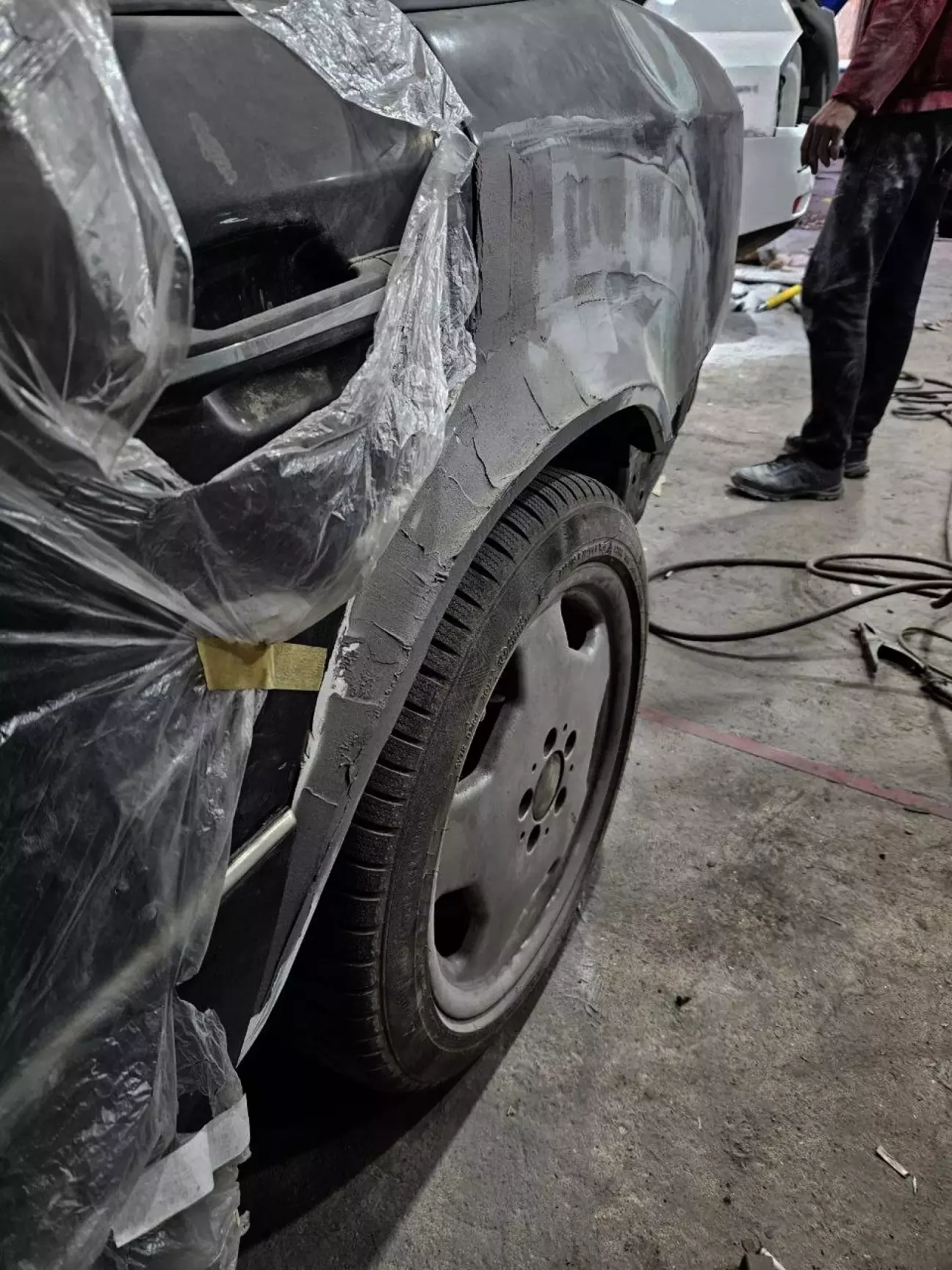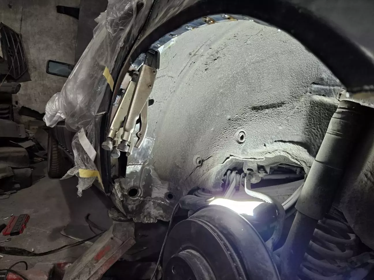 У одному з попередніх дописів про кузов (https://driver.top/exp/678155/) я розповідвав, що з водійського боку задня арка була у такій "дупі", що на неї навіть дивитись було лячно. Тому її лишили "на солодке". Але, як виявлось, пасажирський бік, не дивлячись на те, що арка виглядала краще, виявився гіршим за водійський. Коли маляр працював з пасажирською стороною, і йому, і мені здавалась, що з іншого боку роботи розтягнуться на місяці, бо доведеться по дрібних шматках збирати кузов. Тому цей момент постійно відклалався. Але якось я вирішую заїхати до Андрія на каву, і бачу таку картину: