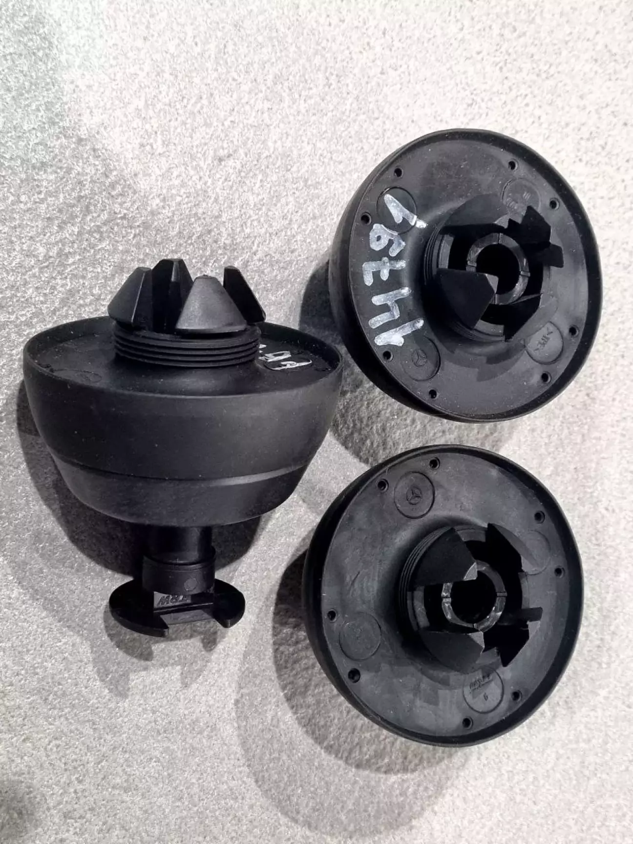 Стає зрозумілим, що тут спасати нічого. Так, наробив лиха ущільнювач антени... Трохи більше 10 років тому варили усю машину. І через таку дрібницю дірка у кузові. Вирішую, що ми будемо позбуватись цього девайсу. Колекційної цінності машина не має, тож сенсу зберігати антену жодного. Нішу багажника будемо збирати по новій, бо знайти живу Б/В - то фантастика. Також Андрій каже, що піддомкратник з цього боку мертвий. Раніше, я привозив новий на той самий бік, але для передку. Питаю, чи не варто привезти тоді вже не один, а одразу ще три нових, що б ми замінили усі по колу піддомкратники та не повертались більше до цього питання. Андрій каже, що з пасажирького боку вони трохи кращі за ті, що з боку водія, але дійсно якщо не шкода грошей, то варто, мабуть, поміняти усі. Ок, замовляю ще 3 штуки по оригіиналу (номер по каталогу 0019979586). Через деякий час привожу їх на СТО: