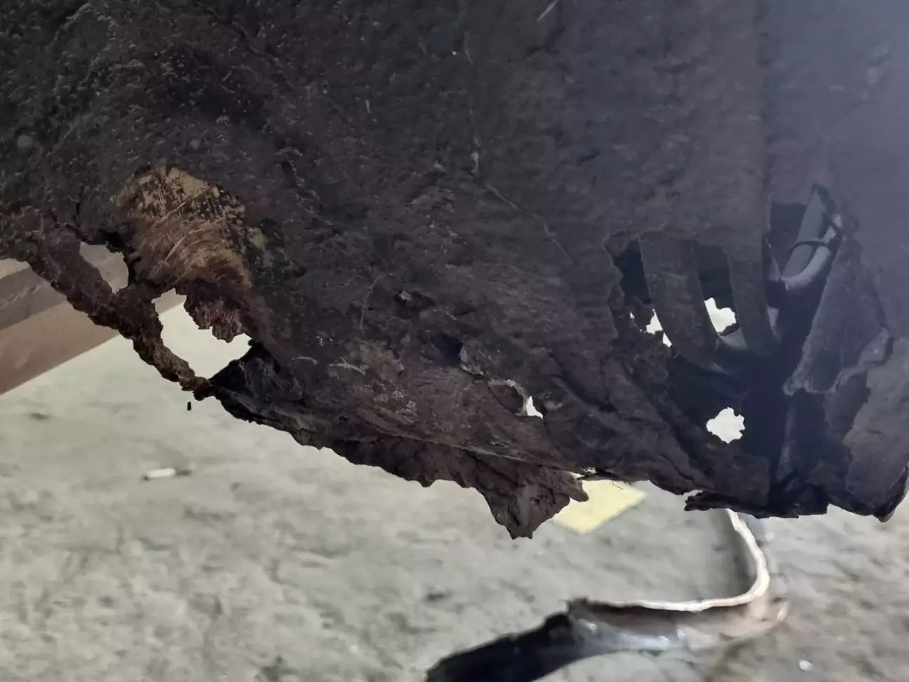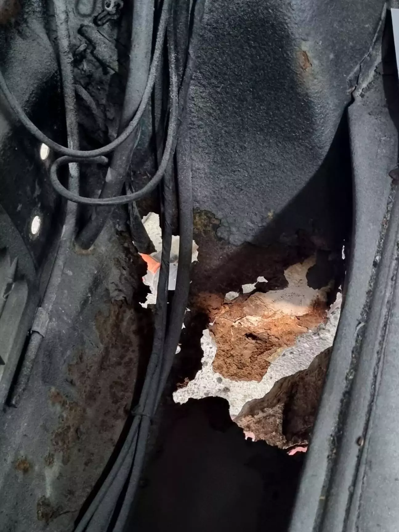 Але якщо подвитись у місце переходу задньої чистини арки у днище (тобто це зовнішня частина бокової ниші багажнику), то тут вже видно обсяги проблеми: