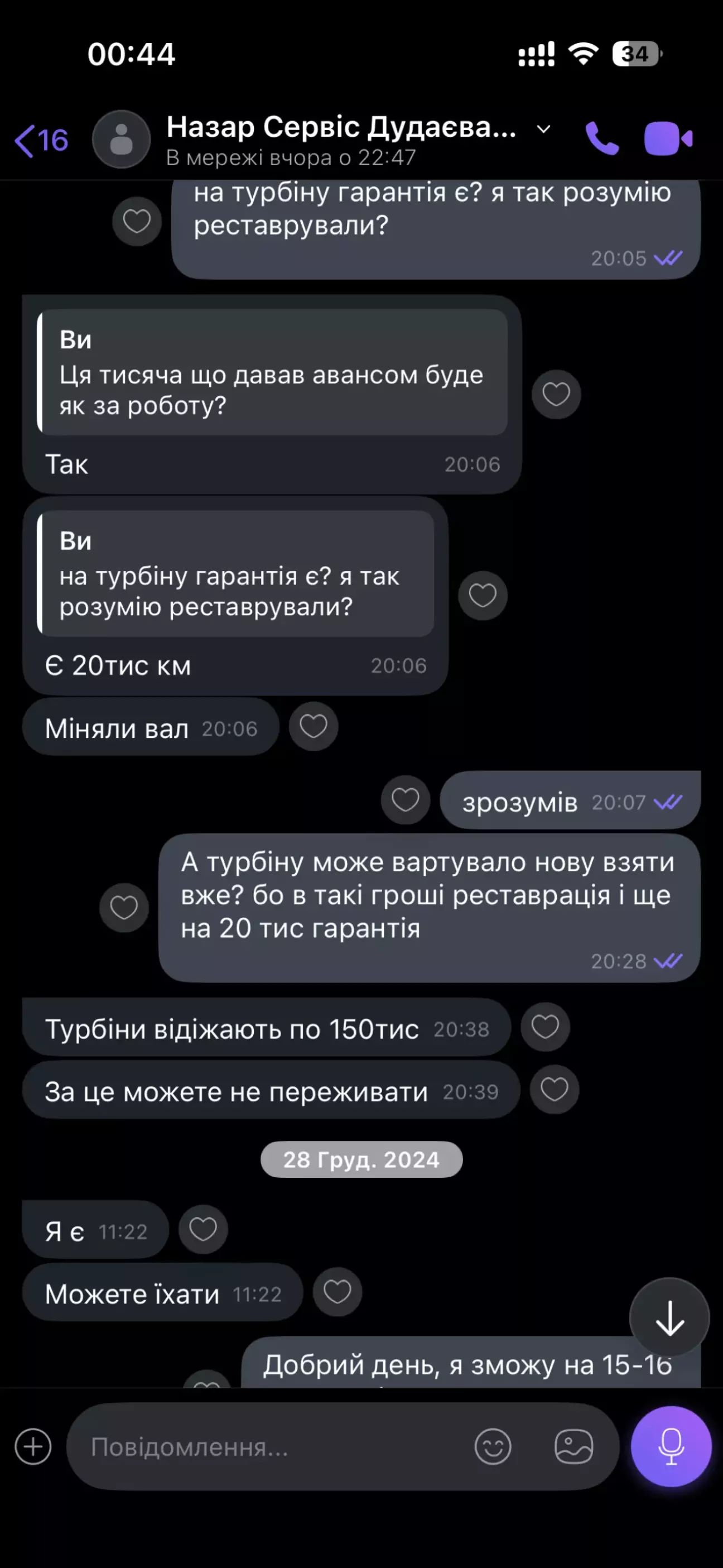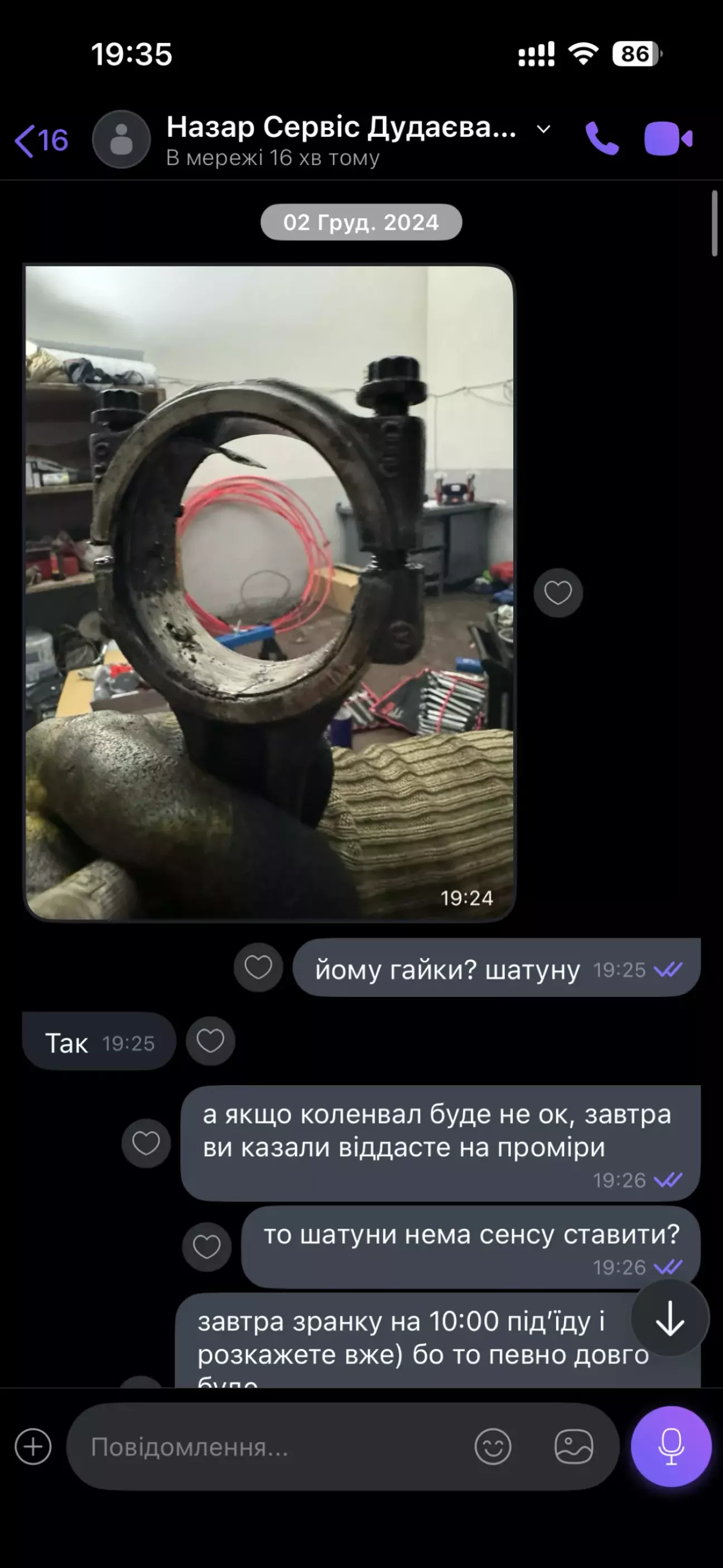 Наступний ранок почався з пошуків сервісів які роблять капіталку дизельних двигунів бо в сервісі в якому завжди обслуговувався була велика черга і мені казали аж через місяць можуть взятись за капіталку мого двигуна, тому прийняв рішення шукати на вже. Питав по місцевим автомобільних групах де можна зробити капіталку - більшість порадили одну людину на імʼя Назар на Дудаєва.Викликав евакуатор - питаю знаєте такого, каже знаю, норм мужик. Думаю ну знач не даремно радили його в телеграм каналах і евакуаторщик знає.