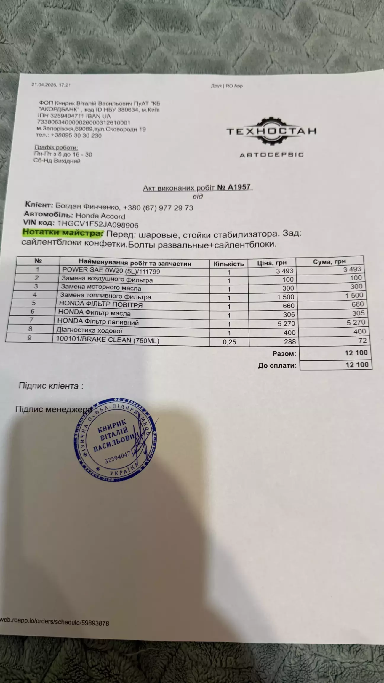 Отже на ТО всі фільтра оріджинал, а ось масло Мотьіль трішки інше