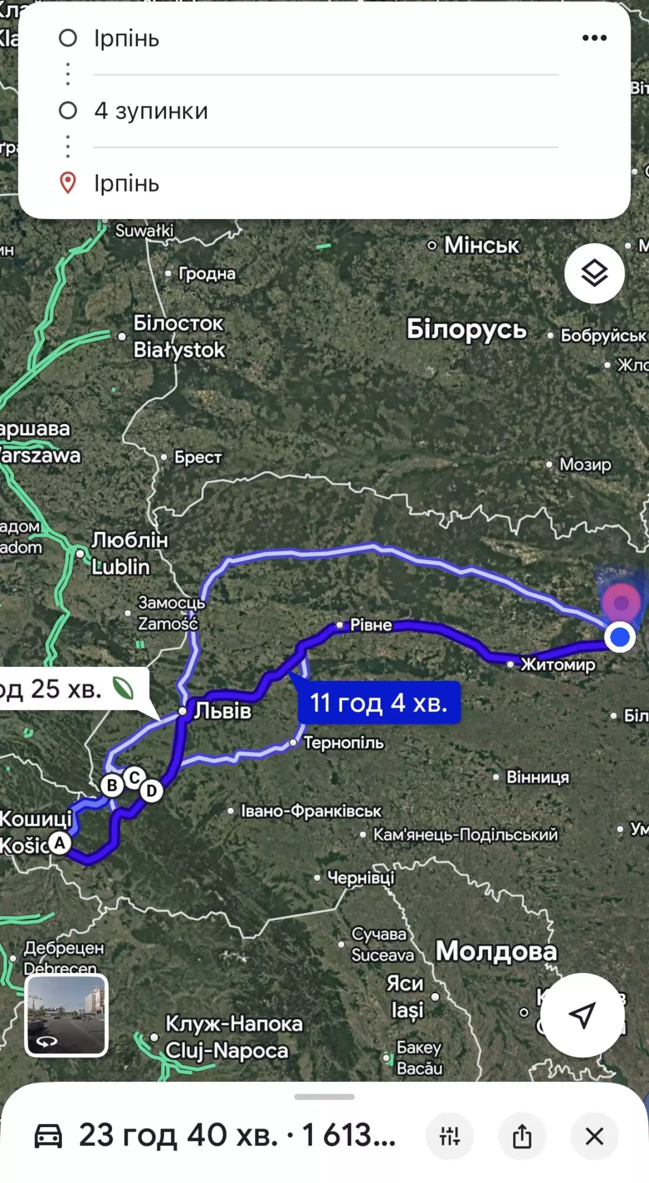 Виіхали в пятницю в 9 ранку, перша зупинка - заправка перед Рівне, друга вже в Мукачево. ну а далі вже Ужгород......