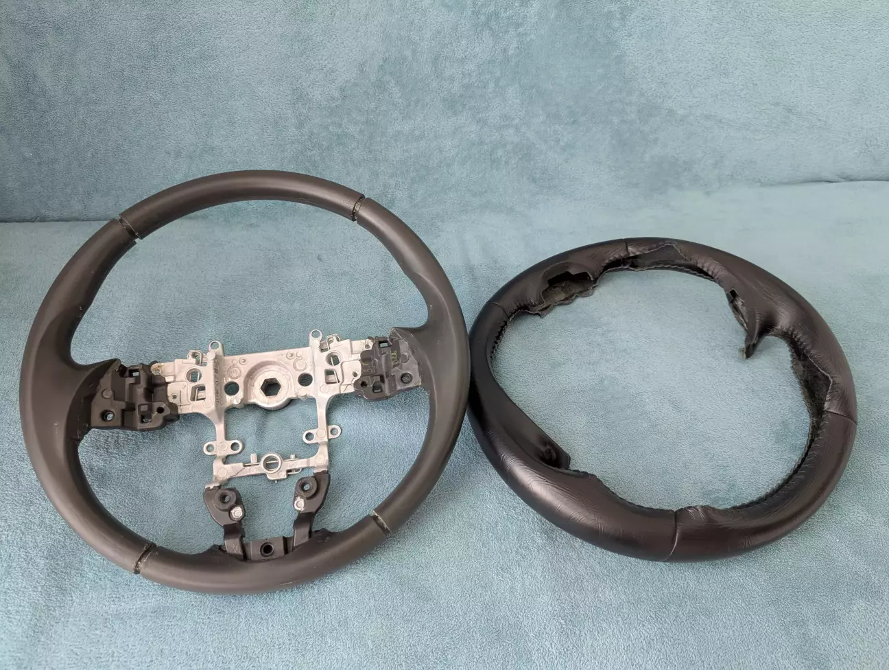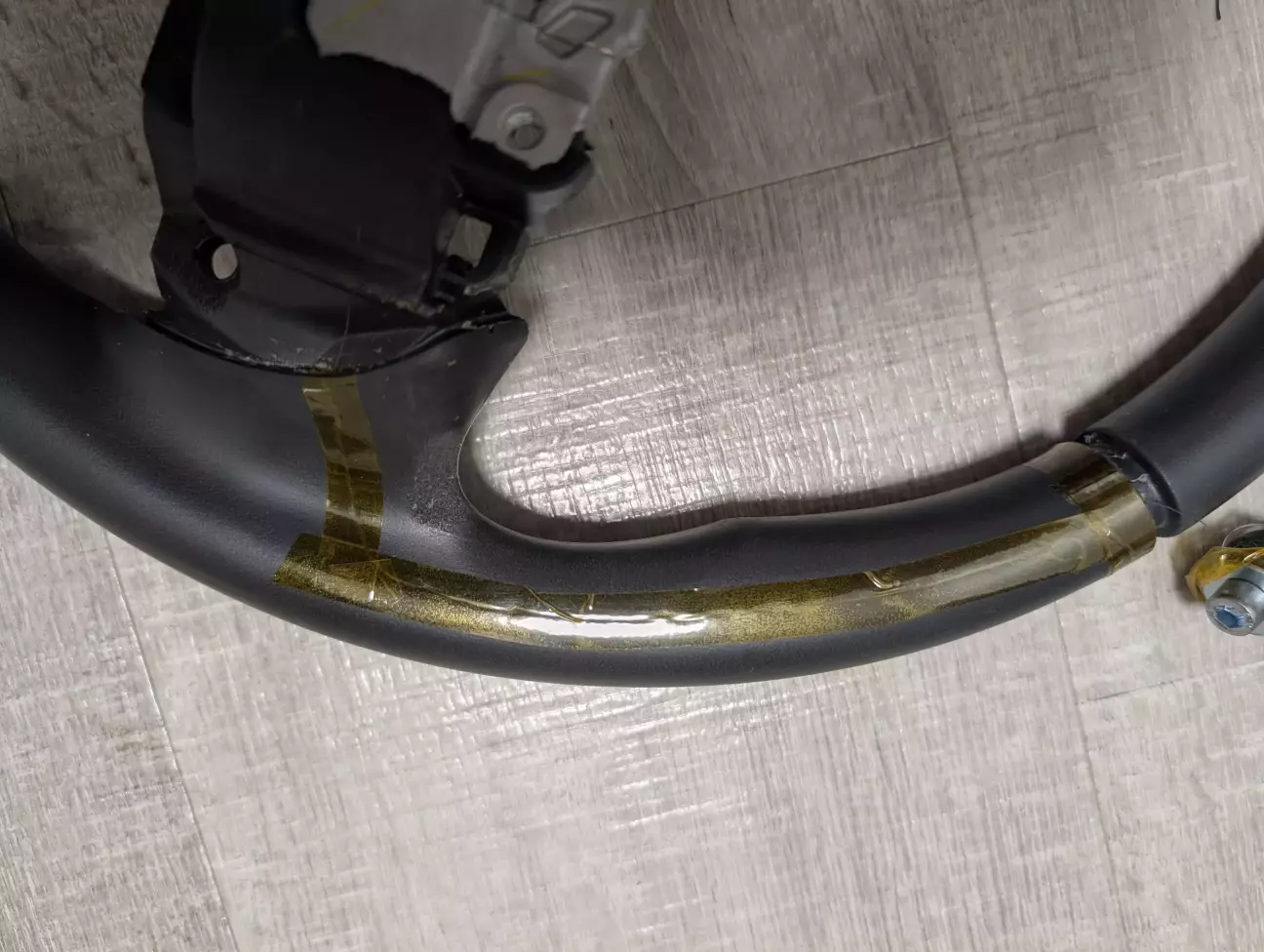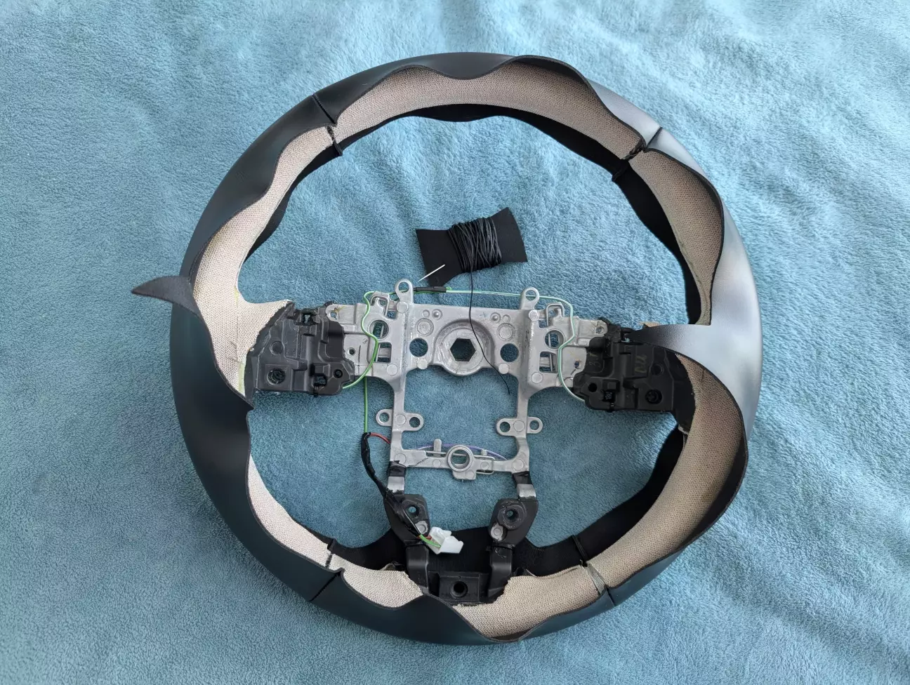 Почав роботу зі зняття обплетення з керма. Розпустив нитку і «роздягнув» його ))