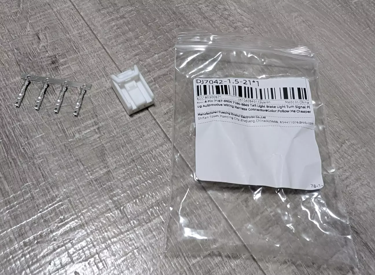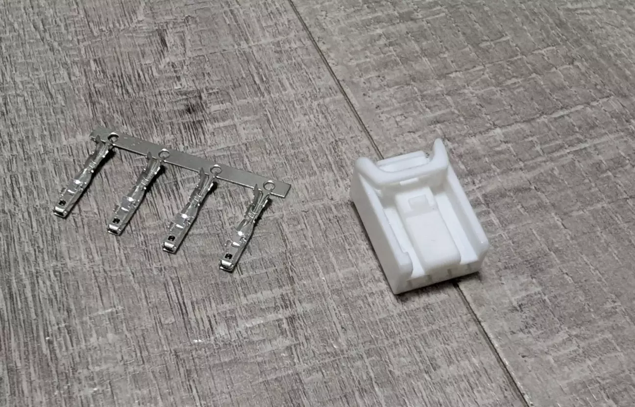 Після отримання шлейфу почав шукати штекери для підключення живлення на вхід у шлейф і на вихід. Перелопатив майже всі каталоги виробників автомобільних роз’ємів і знайшов візуально і по розмірах схожий штекер у Yazaki 7187-8854. В оригіналі один штекер синього кольору а другий начебто білий, але знайшов на Аліекспрес тільки білого кольору. На диво вони підійшли.