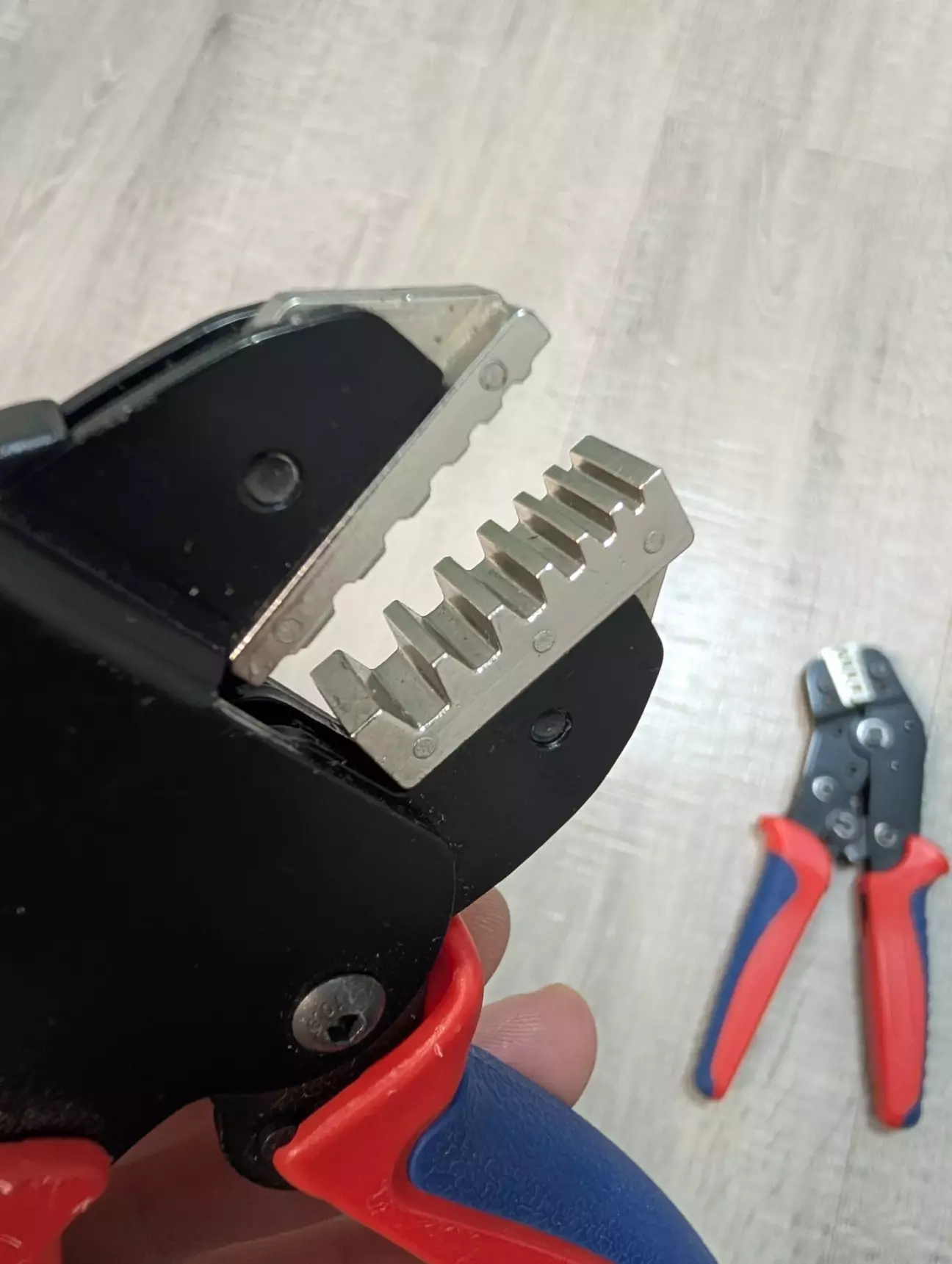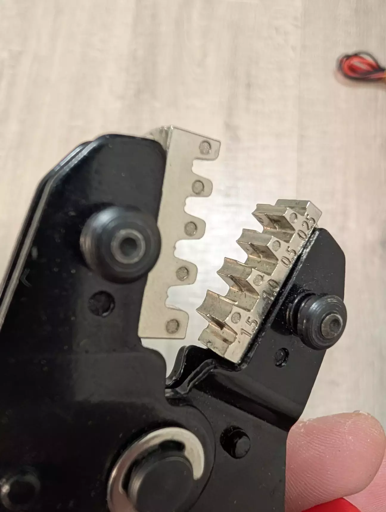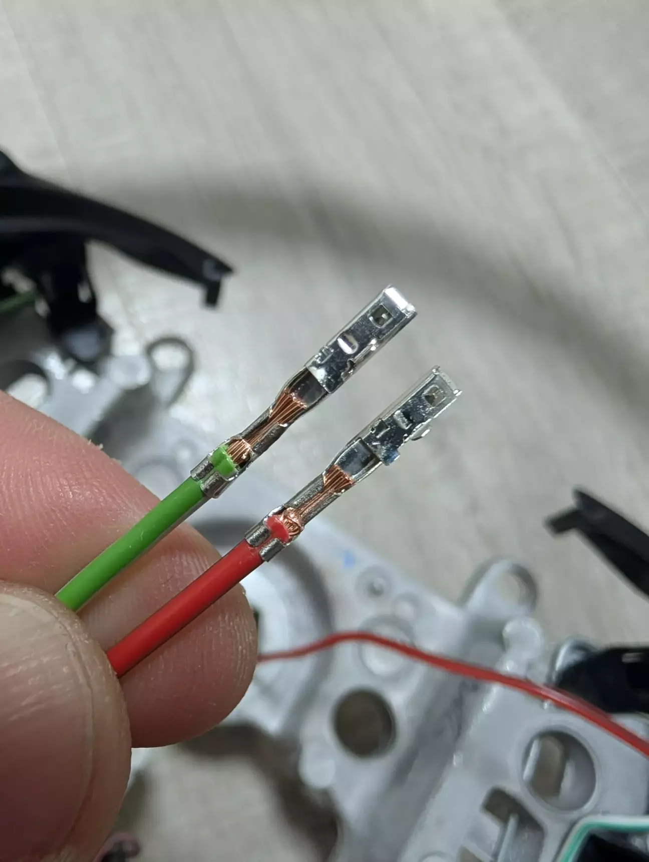 Кінці проводів обжав кліщами з іншими лещатами для пінів і вставив піни у штекер. Вийшло так…
