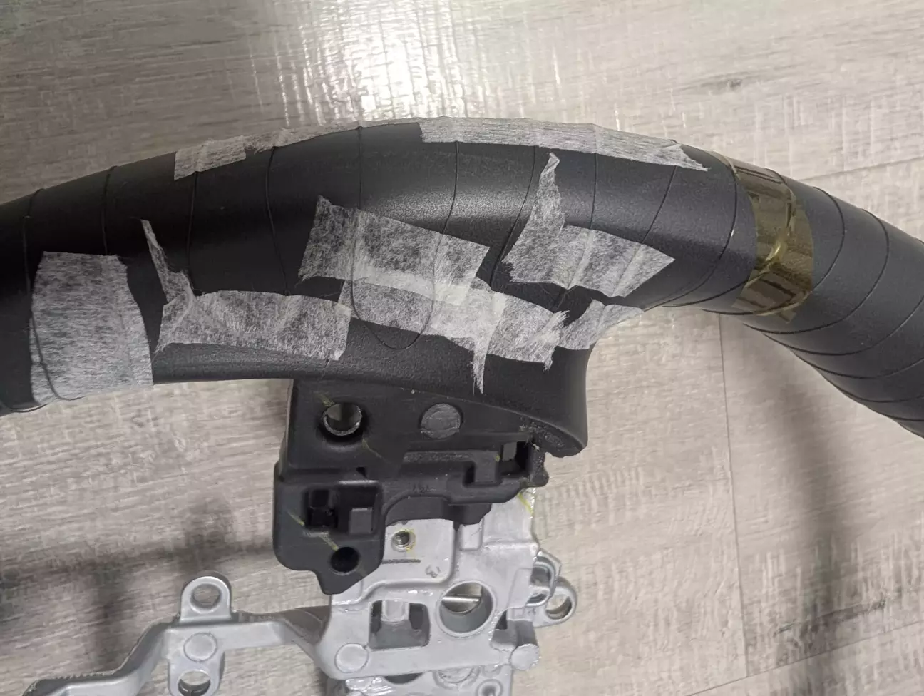 Далі наніс на кермо клей 88 і поклеїв еластичний бинт, щоб нагрівальний дріт не проступав через обплетення після перетяжки. Бинт взяв шириною 10 см.