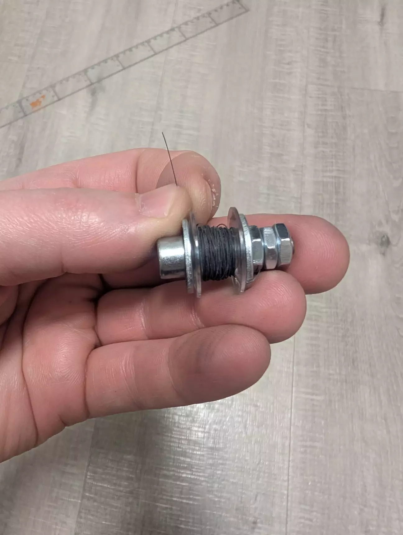 Намотав нагрівальний дріт періодично фіксуючи каптоновим скотчем (він міцний і дуже тонкий). В позиції на 3 години і 9 годин вкладав його зигзагом і фіксував «петельки» шматочками папір’яного тонкого пластира.