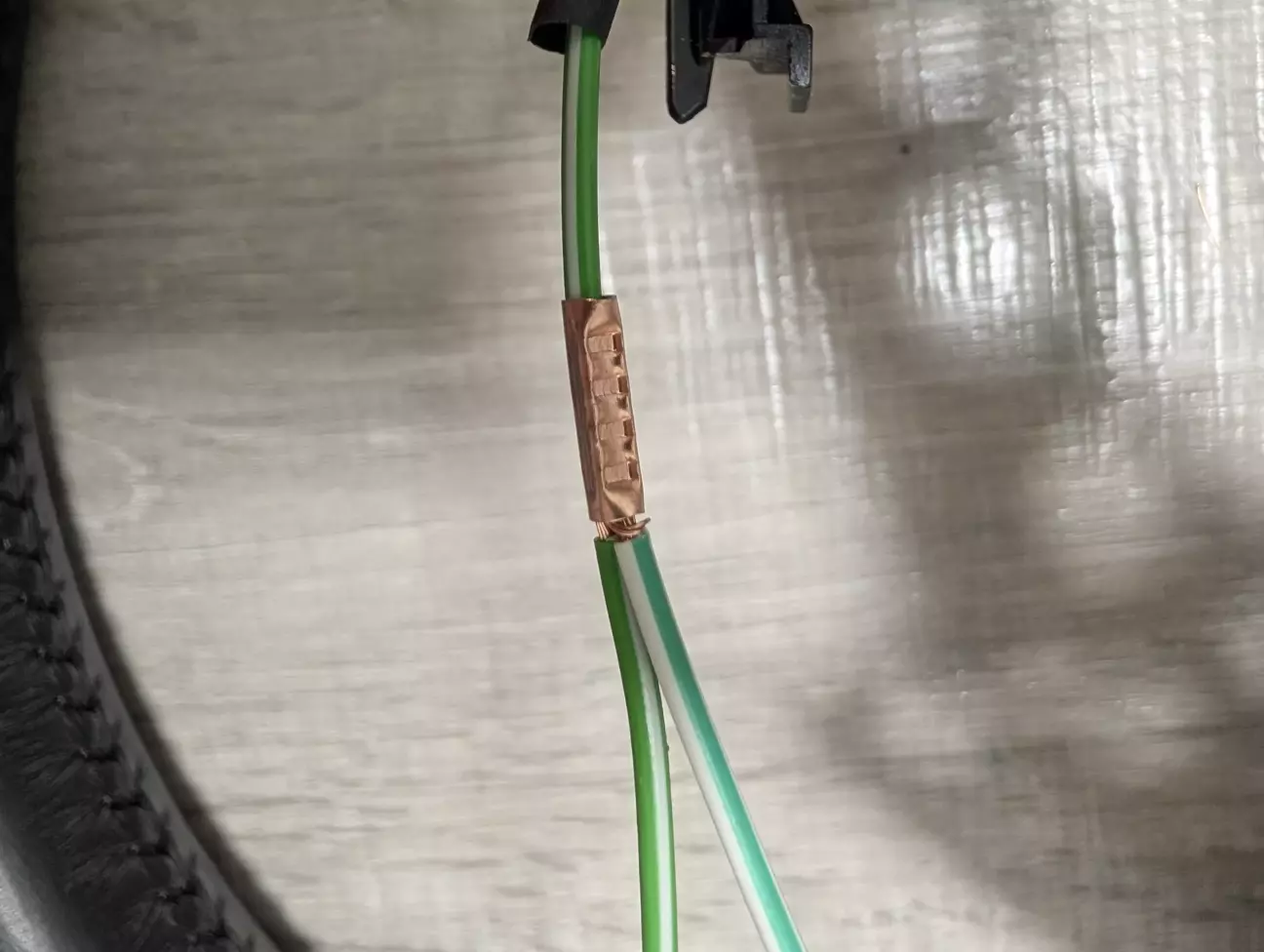 Виводи вольфрамового дроту з’єднав з мідними проводами за допомогою обтискних кліщів і мідних гільз. Проводи між собою так само.