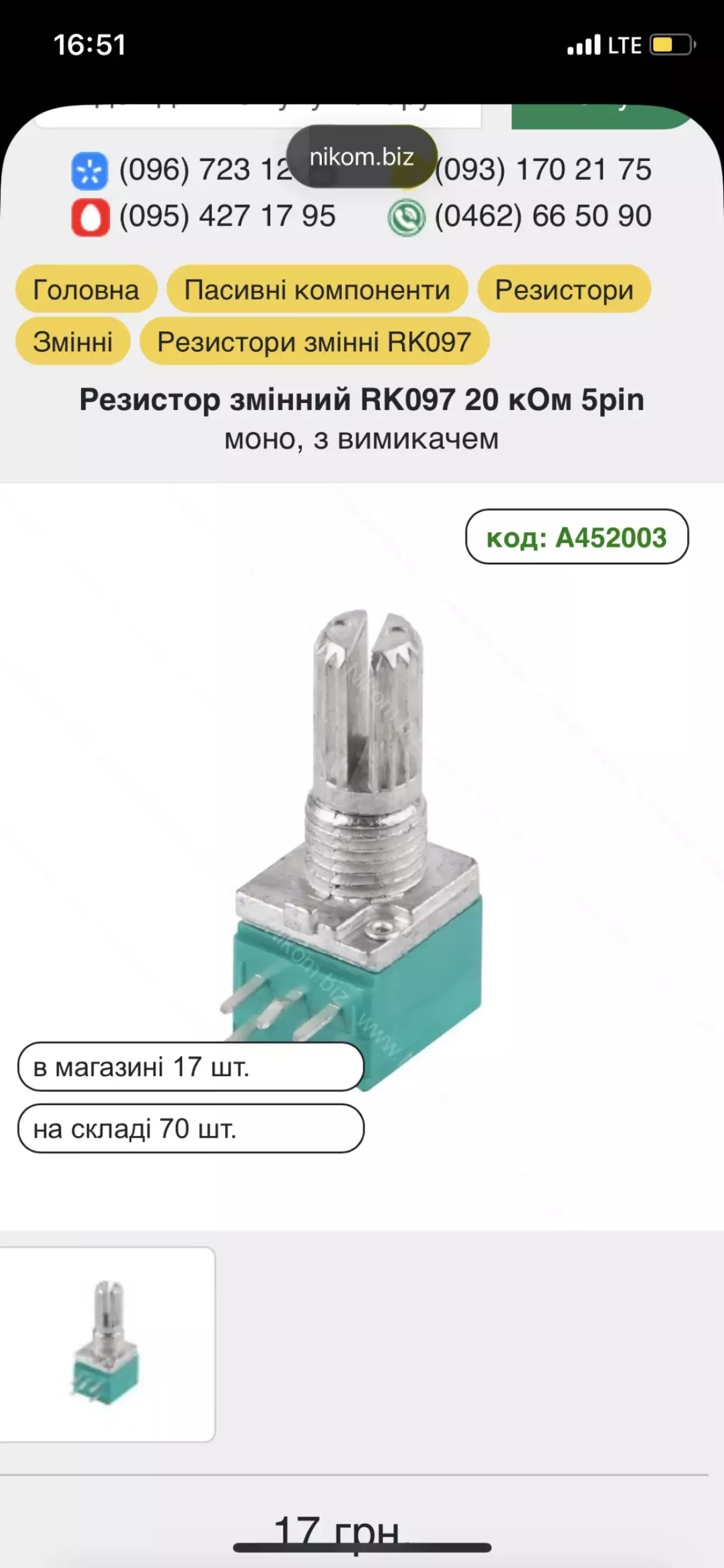Купив резистор на 20кОм та розʼєм 4p4c доя того щоб зробити свій регулятор моноблоку.