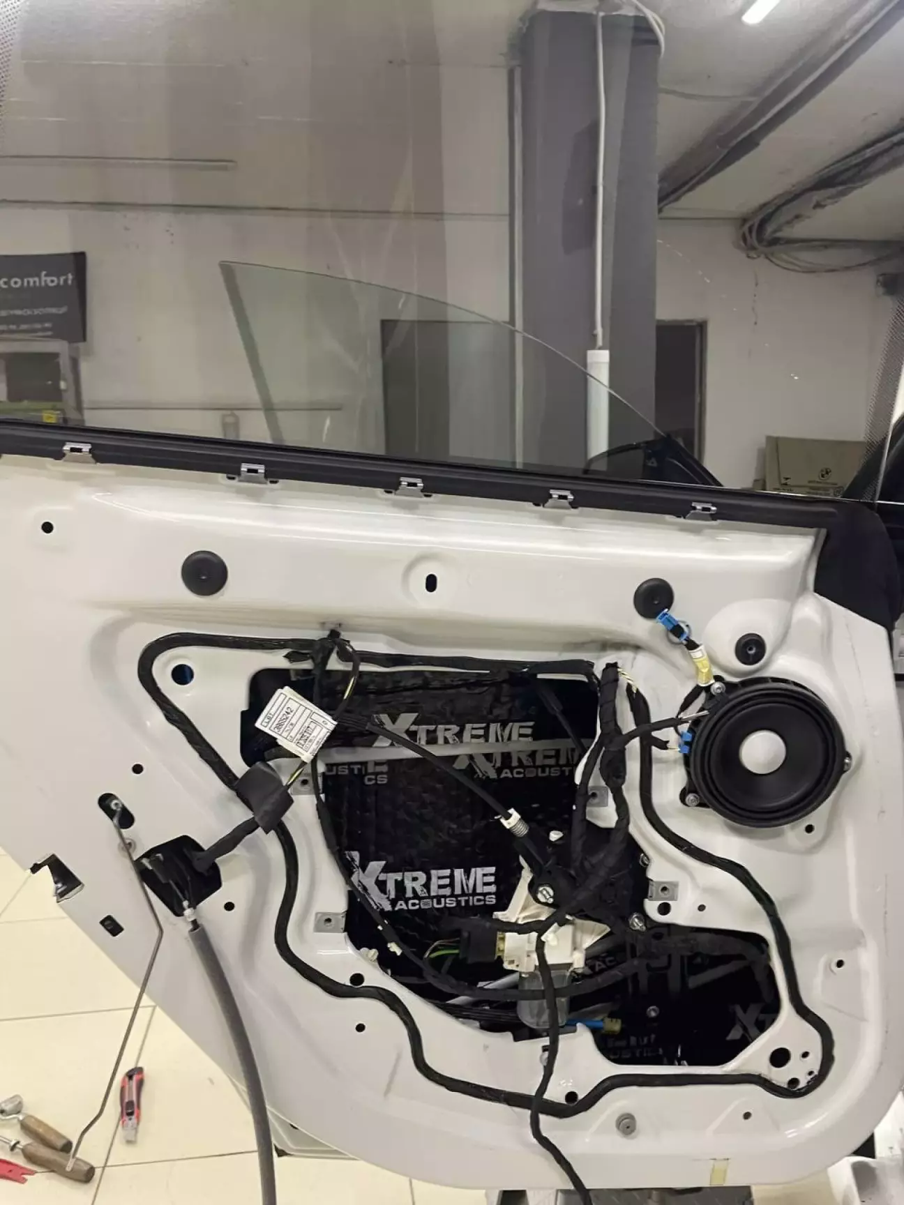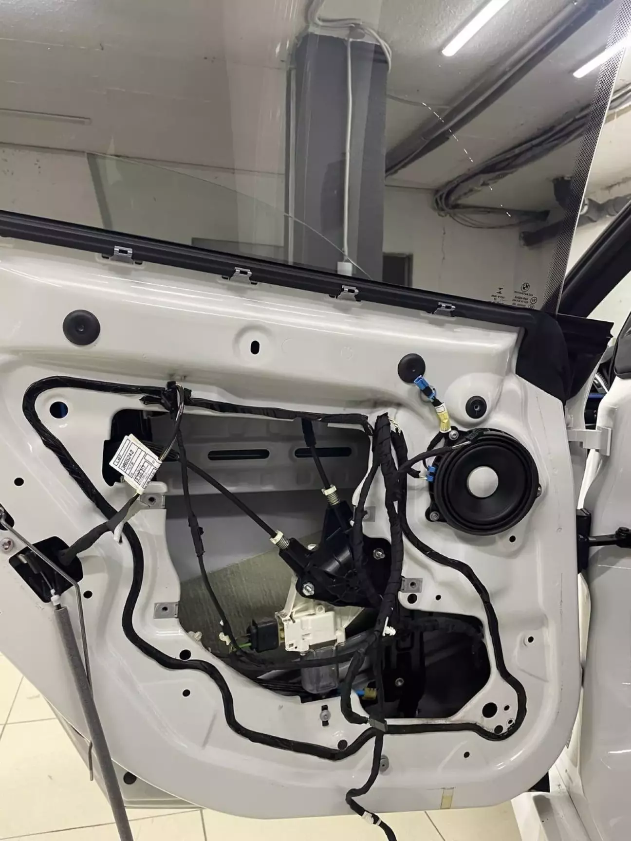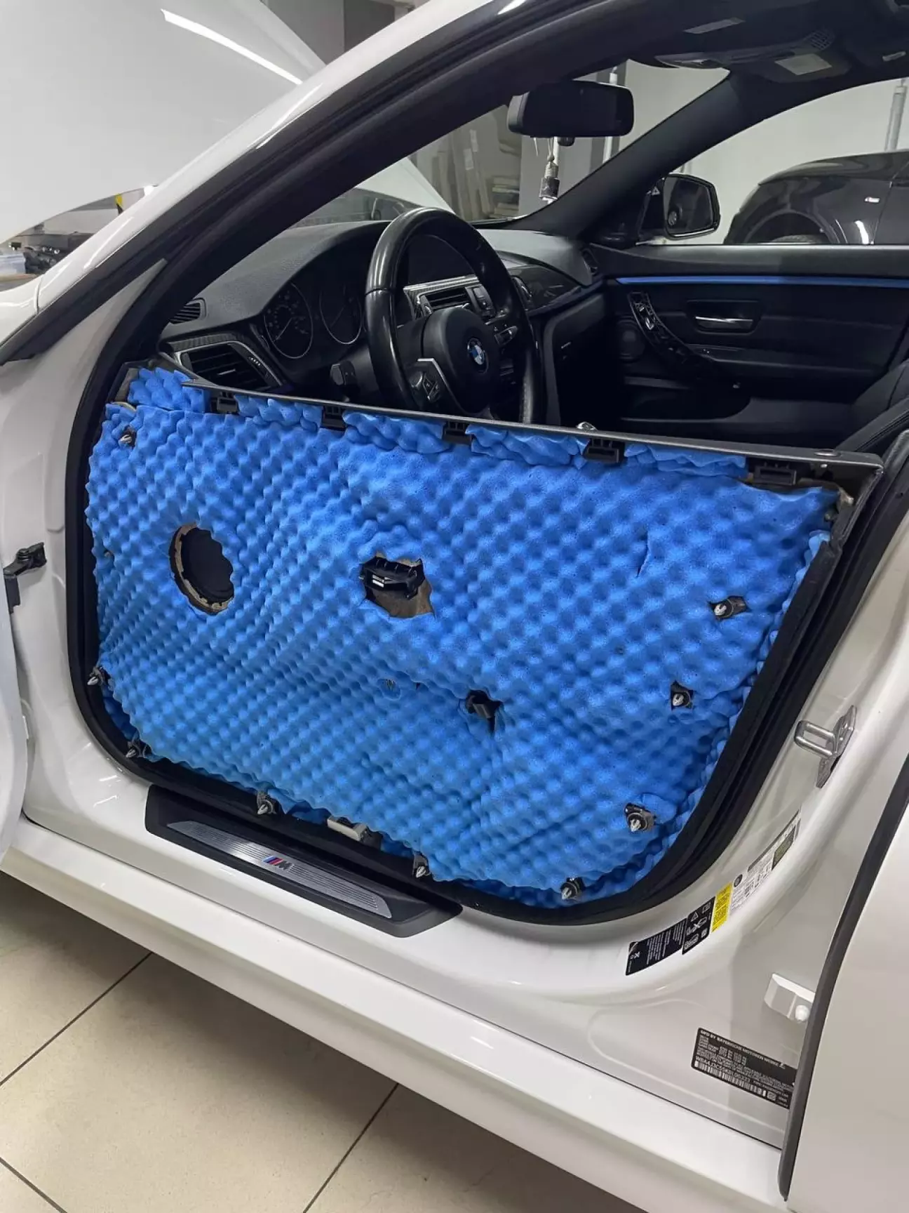 На карту дверей наклеєний шумопоглинаючий матеріал (той самий “яєчний” синій):