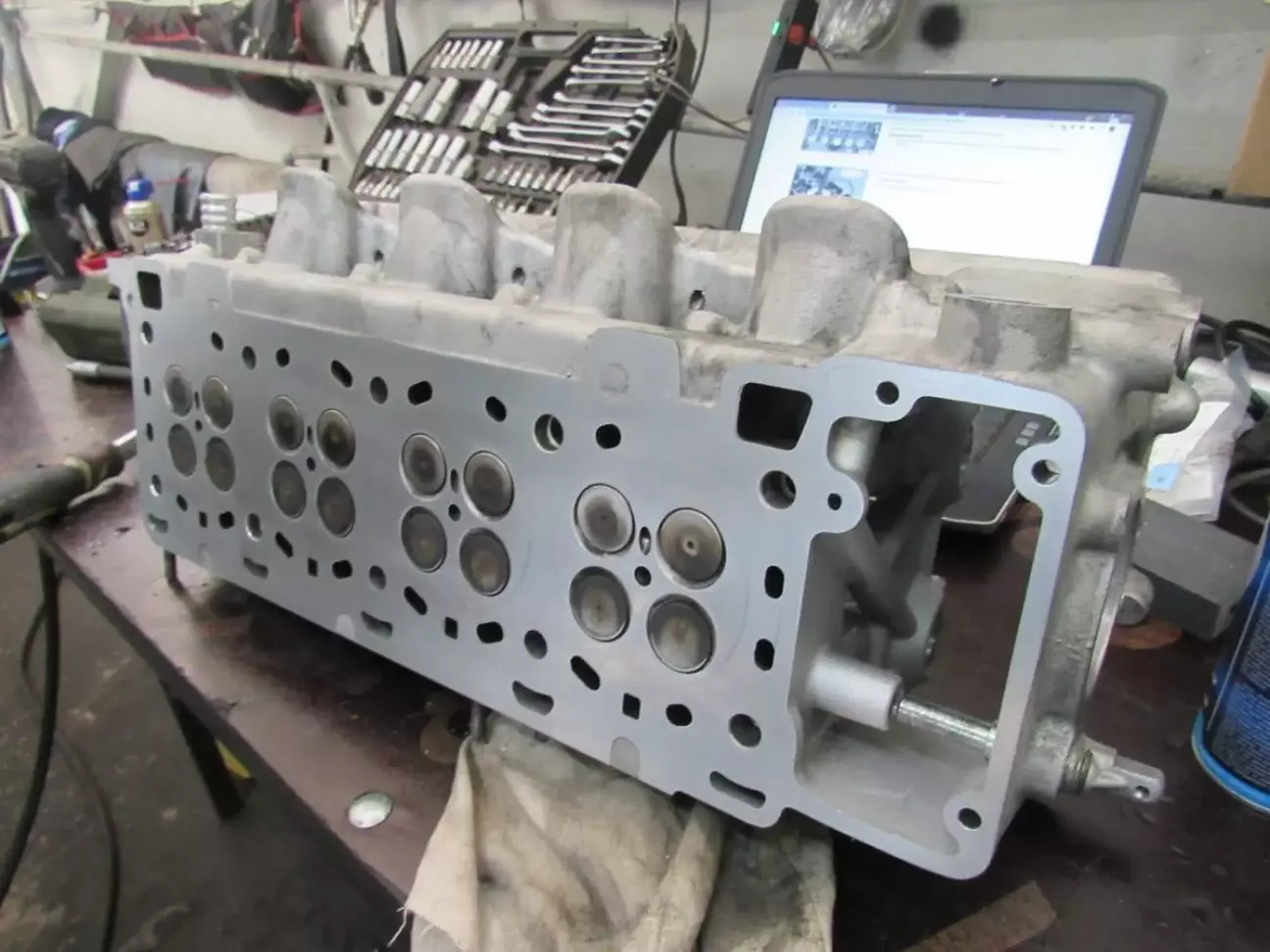 Нові сальники клапанів, притирка клапанів. Загалом ГБЦ без особливих втручань, не зважаючи на сліди контакту поршнів і клапанів у минулому. Розподільчі вали рівні, Зазор в кришках - 0,050мм (допуск - 0,047-0,088мм).