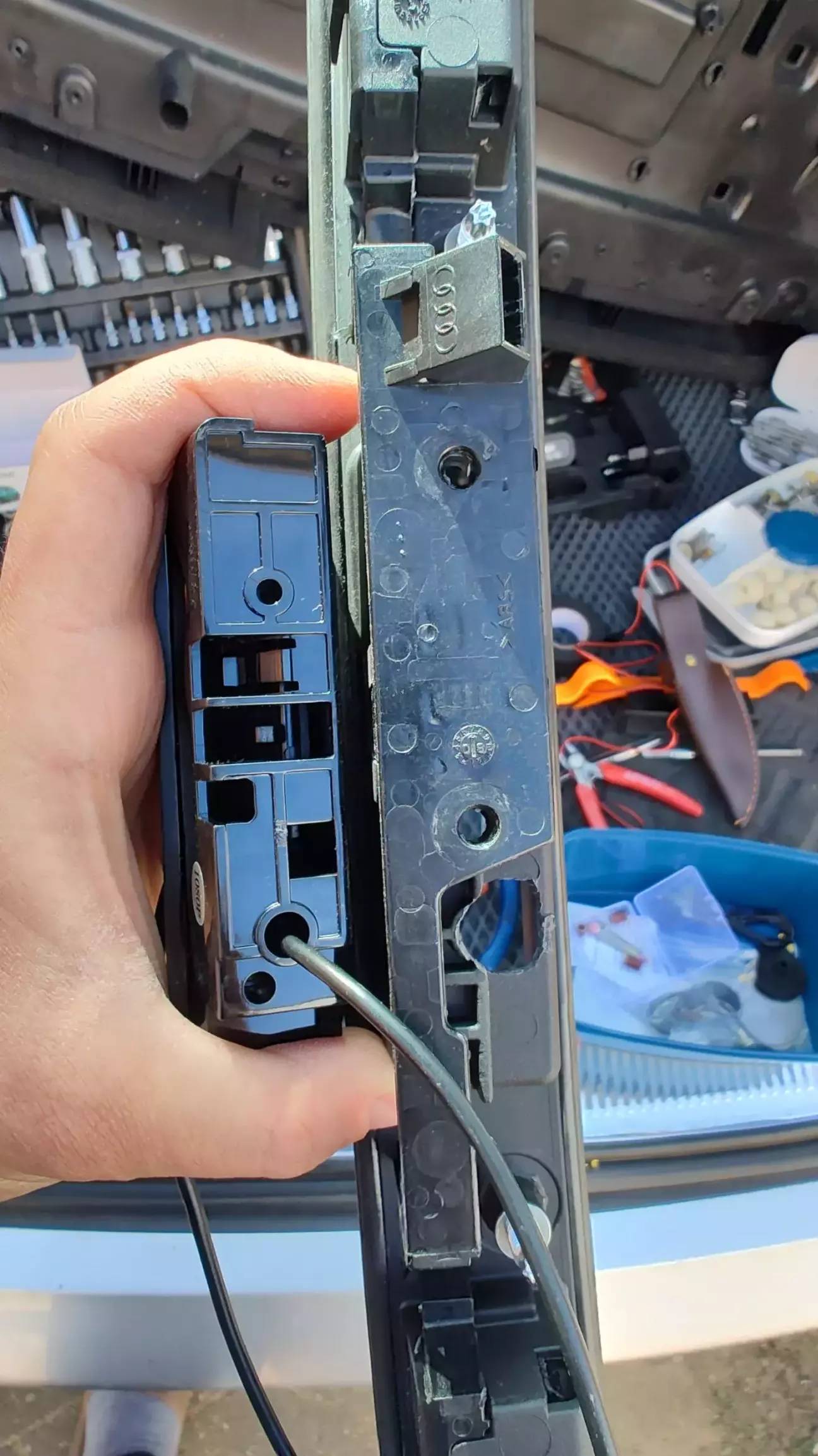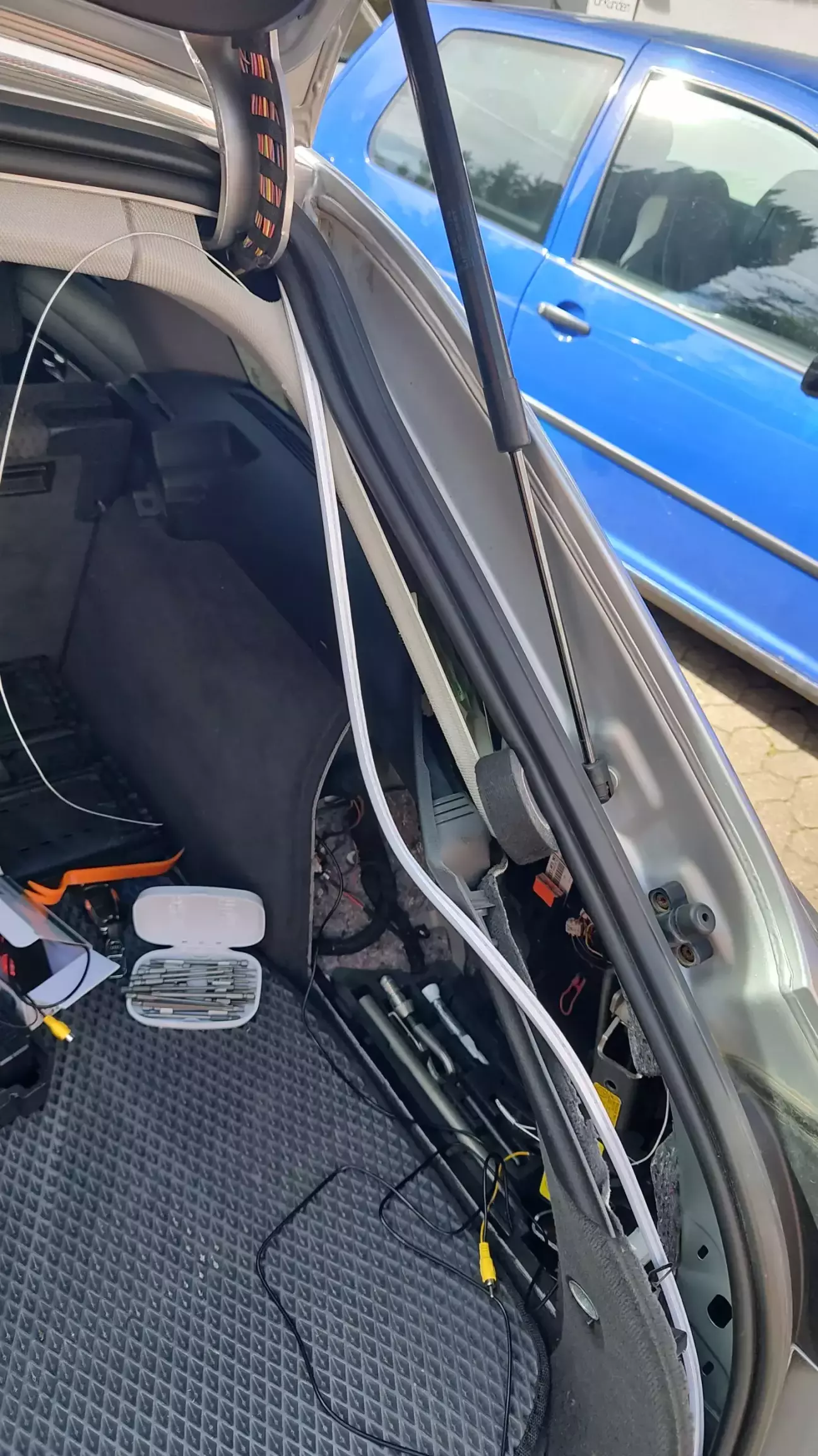 Проводку прокладав під пластиковими порогами. Нарешті розібрав задній диван. Ще до мене хтось розляв каву.